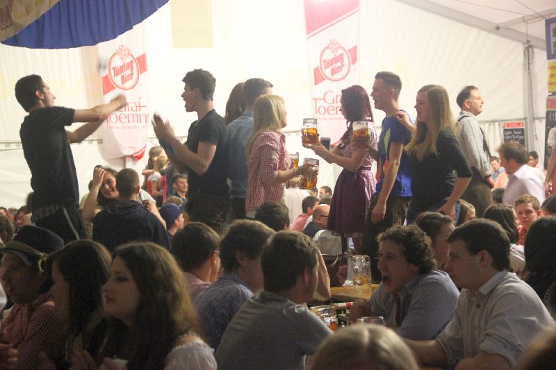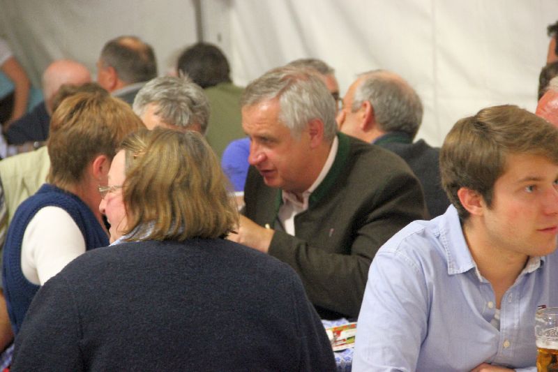 Das Festzelt platzte schließlich mit einsetzender Dämmerung aus allen Nähten, einige nicht mehr ganz jugendliche Gäste zogen es vor, den lauen Frühlingsabend im Biergarten vor dem Zelt zu genießen, dabei aber an der Partystimmung teilhaben zu können. Auch Bürgermeister Heinrich ließ es sich nicht nehmen, dem Beginn der "tollen Tage" In Reichertshausen zusammen mit Mitgliedern des Gemeindearts und der Gemeindeverwaltung beizuwohnen.
