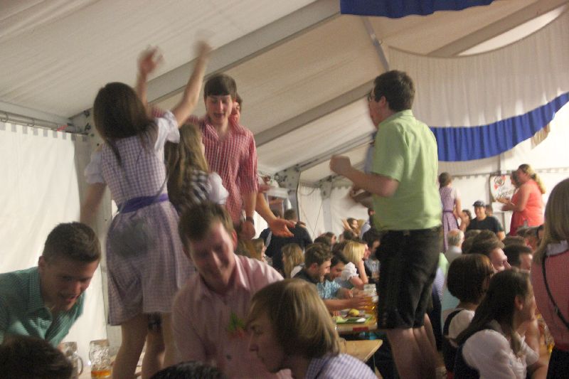 "In Pfaffenhofen haben wir schon gespielt, aber hier in Reichertshausen sind wir zum ersten Mal." stellte Frontmann Tom zu Beginn des Auftritts der Erdinger Band fest. Und dann legten sie los: kein Warmspielen, keine Spur von Anlaufphase, es dauerte nicht einmal 5 Minuten, da standen die ersten Partygäste schon auf den Bierbänken und es gab kein Halten mehr.