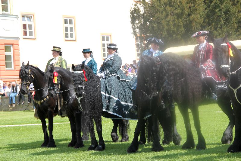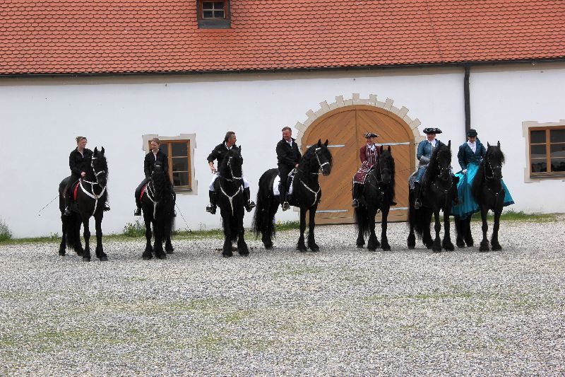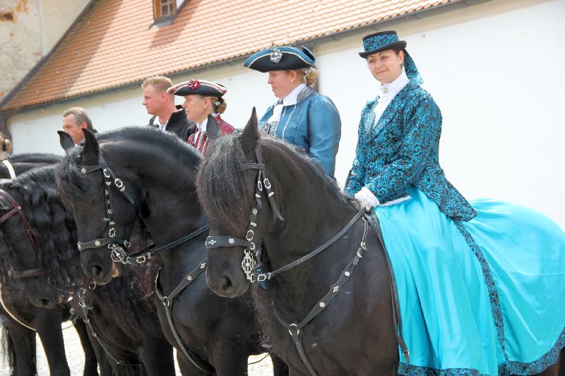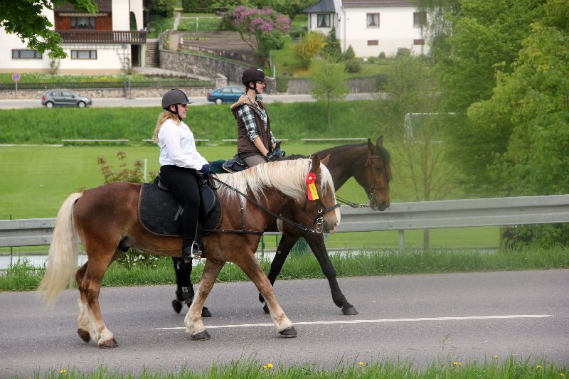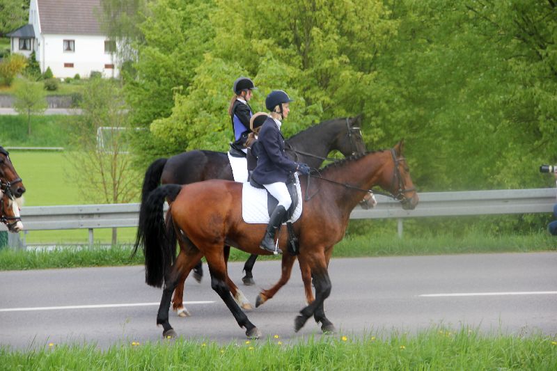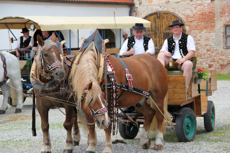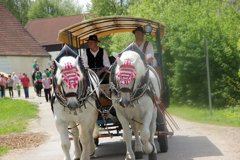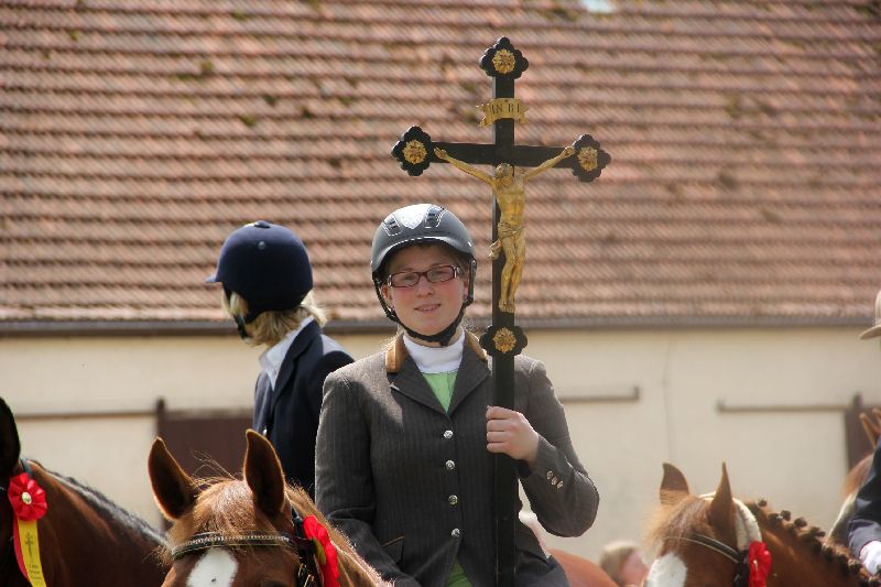 Auch wenn es heuer trotz des kleinen Jubiläums weniger Teilnehmer gab als vergangenes Jahr, so erlebt der Besucher des Scheyrer Kreuzritts jedes Mal aufs Neue ein wunderschönes Bild. Ca. 40 Reiter hoch zu Ross und 4 Gespanne zogen vom Prielhof an den Weihern vorbei hoch zum Klosterhof, wo Pferde und Reiter ihre Segen empfingen.
