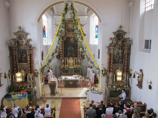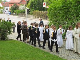 Eine der letzten Erstkommunionen in diesem Jahr fand am Sonntag in Attenkirchen statt. Bei schönem Frühlingswetter zogen unter Glockengeläut 15 Jungen und Mädchen in die besonders schön dekorierte Kirche, direkt im Ortskern. Diese war bis auf den letzten Platz gefüllt und bot einen wahrhaft festlichen Rahmen.