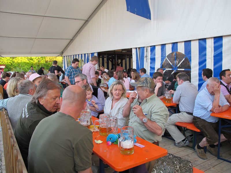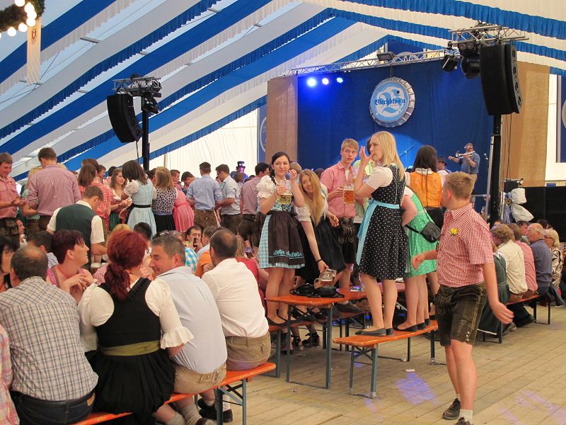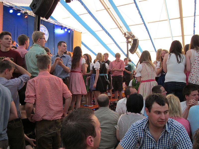 Und am Abend lud die beliebte Band "Blechblosn" zur Party ins überfüllte Bierzelt, sogar die Plätze davor im Freien waren Mangelware. Vor allem die Jugend, fast alle in Dirndl oder Lederhose, feierte begeistert mit, in Wies`nmanier wurde auch auf den Bänken mitgetanzt und - gesungen.