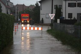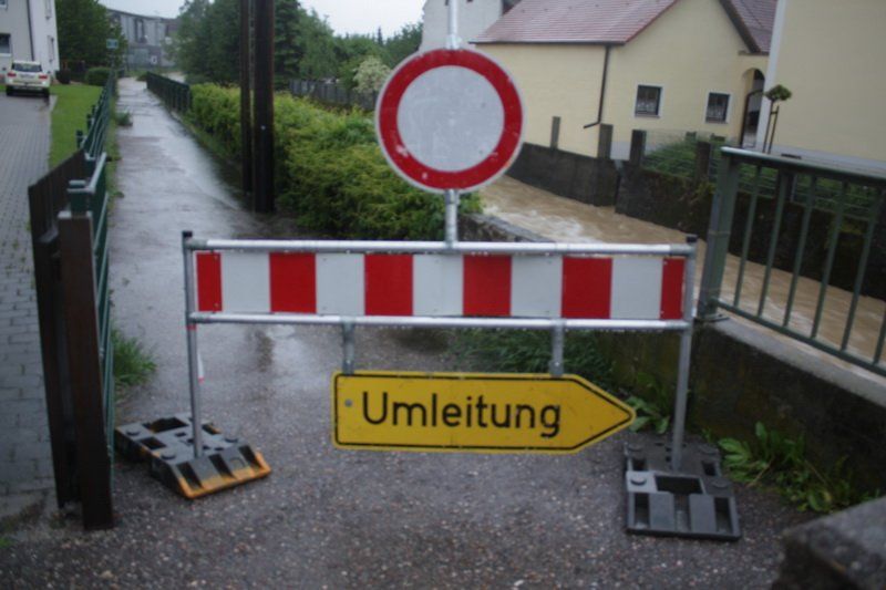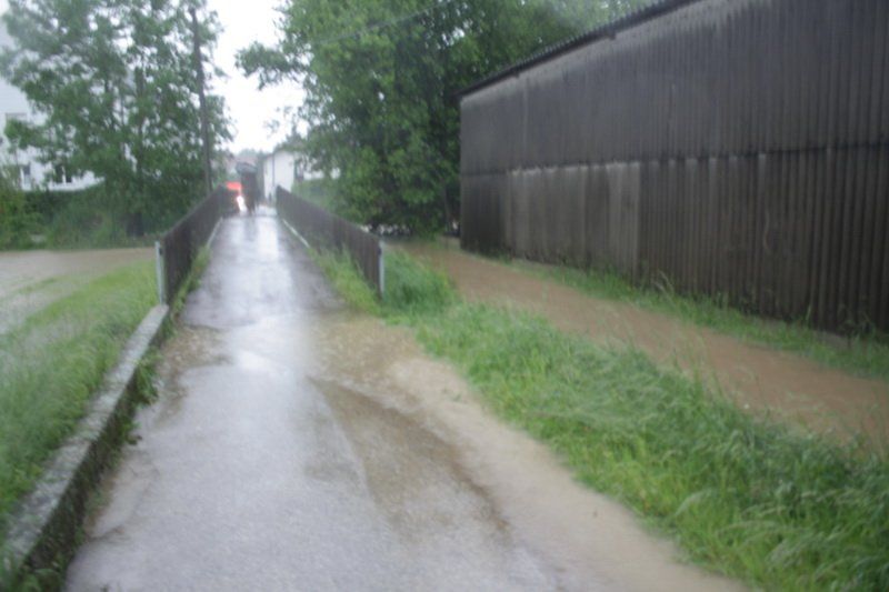 Durch diesen Dauerregen schwoll die Wolnzach bis auf über 2 Meter an und trat an vielen Stellen über die Ufer. Die Auenstraße musste letztlich für den Verkehr komplett gesperrt werden. Dort stand das Wasser bis zu 40 cm hoch. Mit Sandsäcken und Pumpen war die Wolnzacher Feuerwehr dort im Einsatz, um das Wasser aus den Kellern der Anrainer zu pumpen. Aber nicht nur in der Auenstraße, sondern auch bei der Firma Altmann hieß es letztlich Land unter. Die tiefer gelegenen Parkplätze wurden komplett überflutet. Auch in zahlreichen Ortsteilen bahnten sich die Wassermassen neue Wege.
