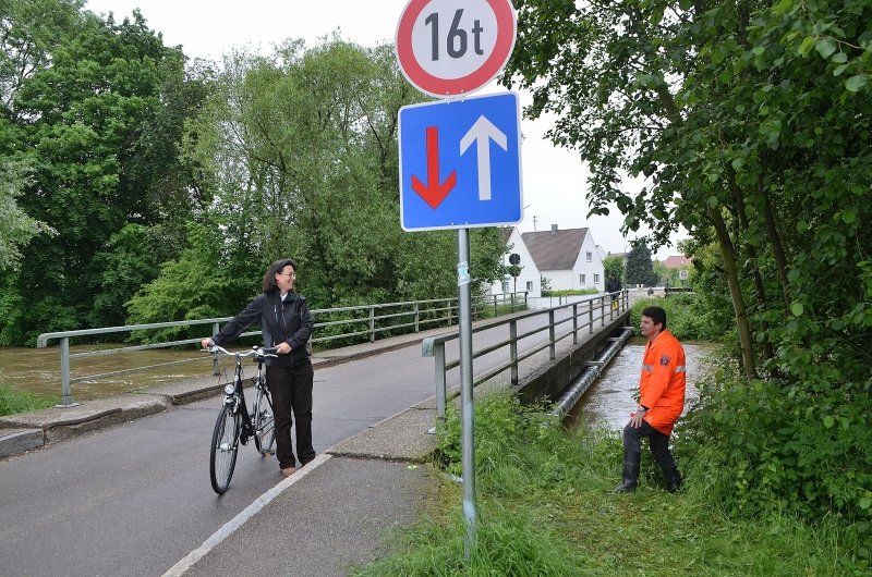 Wolf zeigte sich während der Rundfahrt im Ort sehr betroffen vom Ausmaß der Überflutungen und den schon jetzt erkennbaren materiellen Schäden. Erfreut hingegen ist er über den Zusammenhalt in der Bevölkerung und deren Hilfsbereitschaft. "Das ist phänomenal", so Wolf, der sich bei dieser Gelegenheit ebenso positiv über die Führungskräfte zusammen mit ihren Mannschaften, insbesondere der Feuerwehren, äußerte. Wayand sieht jetzt eine Entspannung der Lage und schickte bereits vormittags die 60 Mann starke Bundeswehrtruppe, die in Baar-Ebenhausen eingesetzt war, mit dankenden Worten nach Hause in ihre Kasernen. Bis an ihre physischen Grenzen gegangen sind die Soldaten zusammen mit den Feuerwehrleuten und anderen Hilfskräften, die teilweise bis zu 20 Stunden im ununterbrochenem Einsatz waren. Wie sie das überhaupt schaffen konnten, das konnte niemand von ihnen heute so genau sagen. Der eine oder andere Feuerwehrler meinte dazu, dass es schon eine Anerkennung wäre, den Einsatz so schnell nicht zu vergessen und ihn positiver Erinnerung zu behalten.