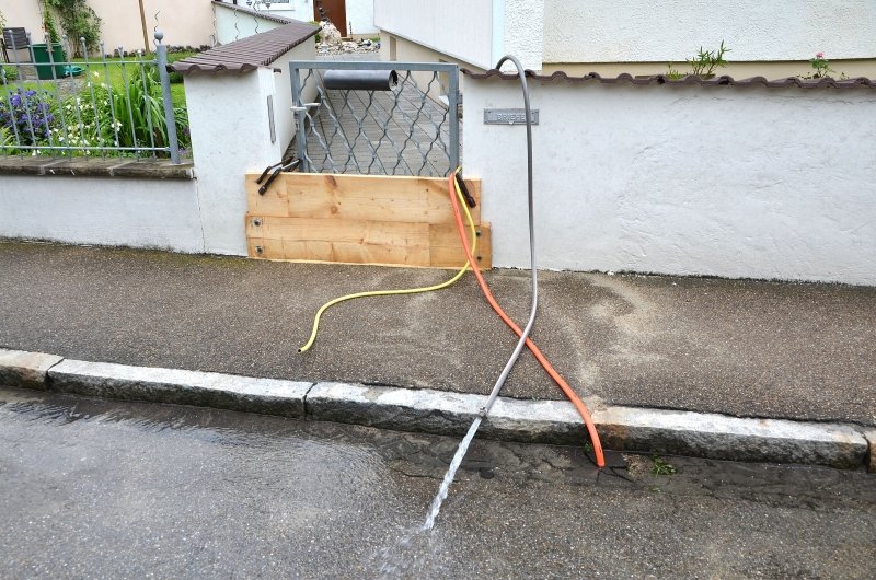 Station bei seiner Rundfahrt durch den Landkreis, direkt nach der Krisensitzung in Reichertshofen am heutigen Morgen, hat Wolf heute auch in Baar-Ebenhausen gemacht. Dort ist er zusammen mit Bürgermeister Wayand zu den neuralgischen Punkte der vergangenen Nacht gefahren. Vor Ort waren beide mit den vom Wasser gebeutelten Bürgern im Gespräch. Vielen der Betroffenen stehen noch immer Sorgenfalten im Gesicht, wenn sie auf die zwischen Kieshügeln und Sandsäcken schnellfließenden Wassermassen blicken. Viele Bürger im Ort sind mit Aufräumarbeiten und dem Auspumpen ihrer Keller beschäftigt, lassen aber vorsorglich die Sandsäcke und wasserabwehrende Planen um ihr Grundstück liegen.