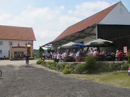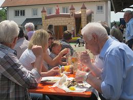 Für die Kleinen gab es eine Riesenhüpfburg, für die Erwachsenen frisches Auer Bier und allerlei Schmankerln, darunter Steckerlfisch, Grillfleisch, Würstl und ein riesiges Angebot an Kuchen, die die Frauen von Aiglsdorf selbst gebacken hatten. Viele kamen mit dem Radl vorbei und nutzten den schönen Tag.