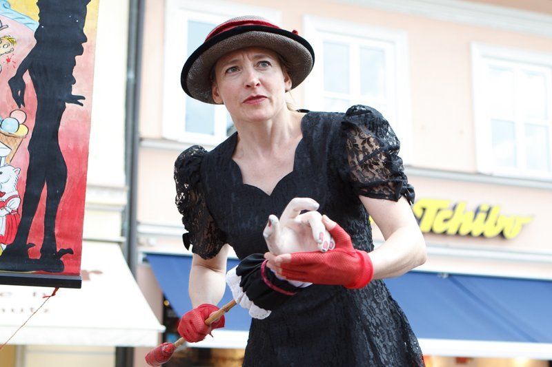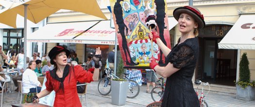 Strahlender Sonnenschein erwartete vergangenen Samstag die Besucher des Pfaffenhofener Wochenmarktes – doch nicht genug! Inmitten der Stände schlugen die Münchner Moritäterinnen im Rahmen des „Sommer in der Stadt“ ihre Drehorgel und Plakate auf, um gemeinsam mit den Zuhörern ein Gstanzl zu singen.