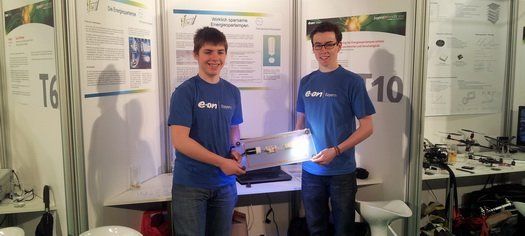 Martin und Marian beschäftigten sich in ihrer Arbeit mit Energiesparlampen. Seit dem EU-weiten Verbot der Glühlampe, das 2009 erlassen wurde, hat die Energiesparlampe für die Industrie und die Haushalte enorm an Bedeutung gewonnen. Das Leuchtmittel benötigt eine Versorgungsspannung, die durch das Netz nicht zur Verfügung gestellt werden kann. Die Lösung ist eine Zweiteilung der Lampe in Leuchtmittel und Vorschaltgerät. Die Lebensdauer des Leuchtmittels ist durch die verwendeten Glühwendeln extrem beschränkt. Die Lampe wird dann sehr häufig mit einem intakten Vorschaltgerät, das energieaufwändige und seltene Inhalte hat, entsorgt. Das Ziel der Arbeit war es, die Bestandteile zu separieren und damit eine Lampe mit auswechselbarem Leuchtmittel herzustellen.