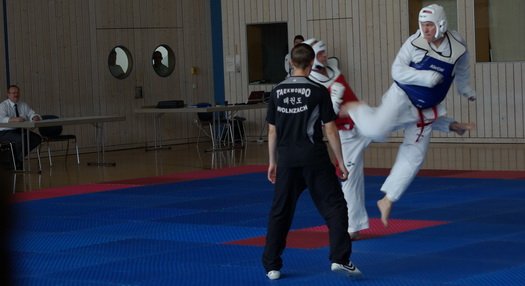 Nach der sogenannten Poomsae (Formenlauf) konnte Karl-Heinz Strauß sowohl im Zweischrittkampf als auch im Vollkontakt Zweikampf sowie in den Prüfungsfächern Selbstverteidigung und Bruchtest überzeugen.