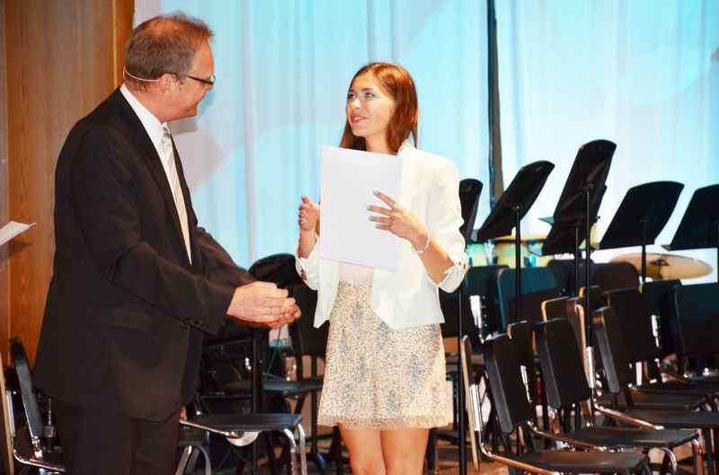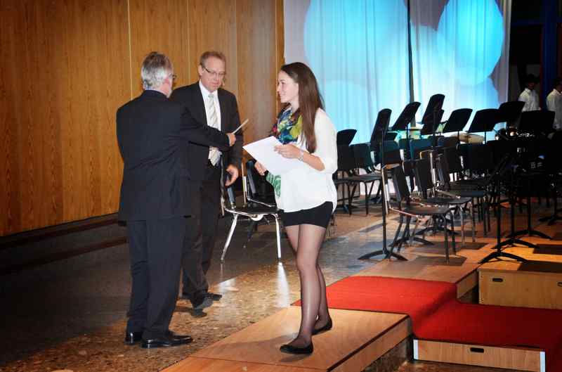 Buchpreise und Zertifikate hab es für herausragende Einzelleistungen. Besonders ausgezeichnet wurden Katharina Kowalewicz und Korbinian Stegemeyer, die die Traumnote 1,0 erreichten, gefolgt mit Maximilian Schwendner mit einem Schnitt von 1,1. In ihren Ansprachen hatten die Vertreter von Schulleitung, Elternbeirat und Abiturienten teils humorvoll, teils ernst auf die Schulzeit zurückgeblickt. Livemusik steuerte die schuleigene Bigband bei.
