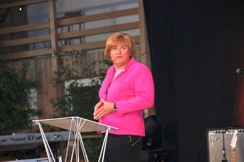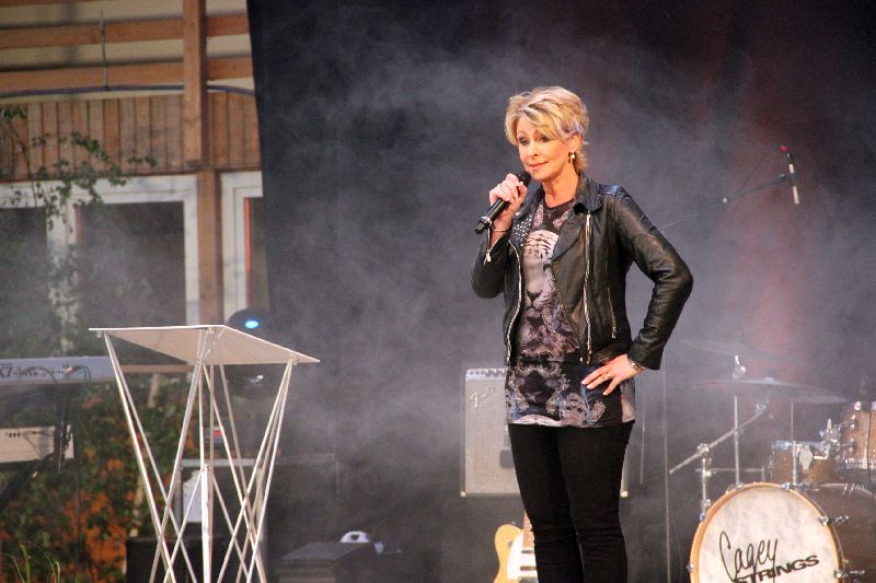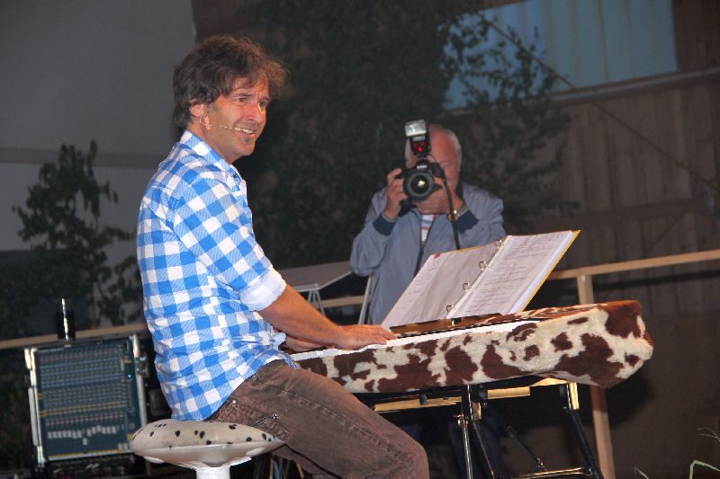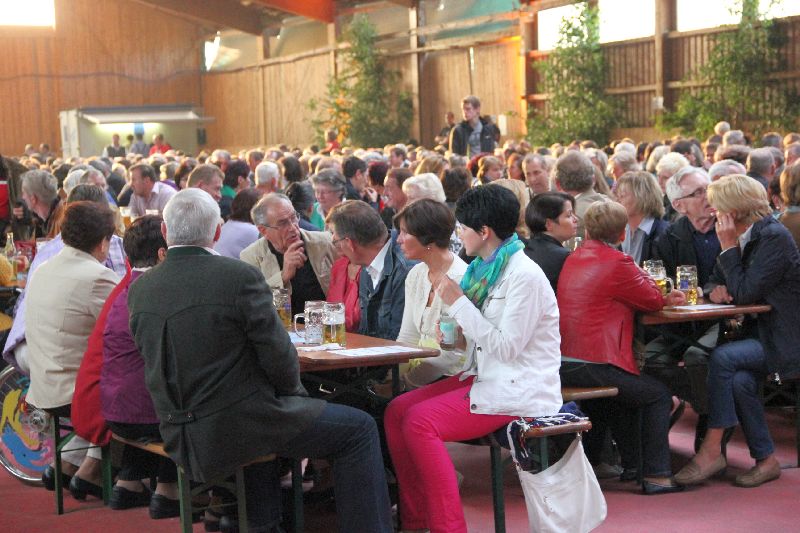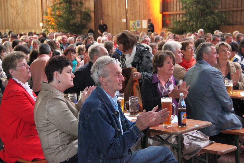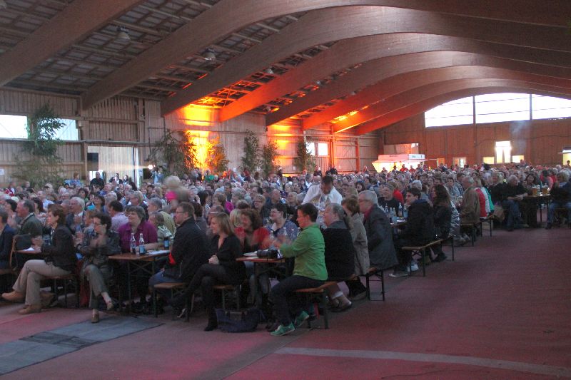 Wo bitte kann in Gerolsbach eine Veranstaltung dieses Formats durchgeführt werden? Immerhin haben sich u.a. so namhafte Künstler wie Mary Roos, Bernie Paul, undChris Böttcher angesagt. Wo ein Wille, da ein Weg, sagte sich die Gerolsbacherin und tat sich mit dem Reiterhof Sonnleiten zusammen. Dessen große Reithalle wurde ausgelegt, die notwendige Technik installiert und mit Bänken und Tischen bestückt - fertig war die Festhalle.