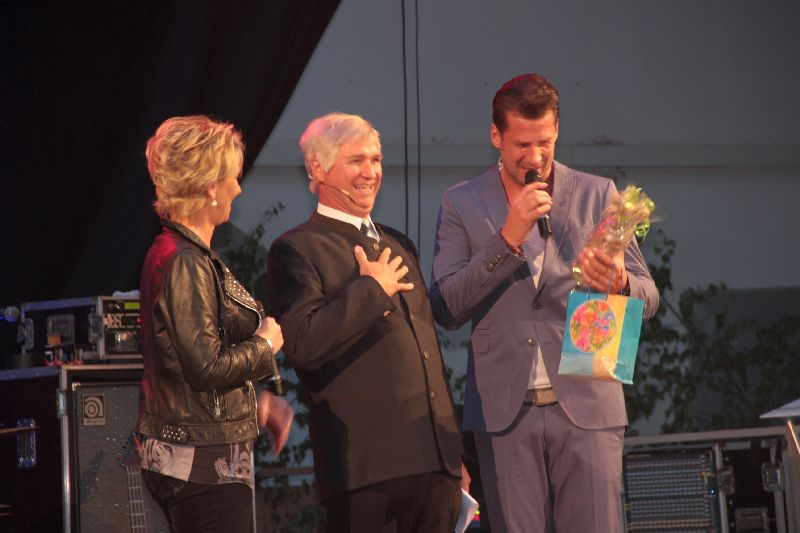 Und das zahlreich erschienene Publikum - man spricht von 1000 verkauften Eintrittskarten - bekam vor allem eines geboten: ein hochkarätiges und äußerst abwechsungsreiches Programm, das garantiert für jeden etwas bot. Mary Roos ("Nein, ich habe nicht schon auf Schellackplatten produziert!") gab einen Querschnitt schon fast kultiger Schlager wie "Schuld war nur der Bossa Nova" oder "Die Liebe ist ein seltsames Spiel". Bernie Paul holte die Disco- und Oldie-Zeiten der 70er und 80er in die Reithalle: "Oh no no" oder "It's a real good feeling" brachten die Tanzpaare in die freien Gänge. Für Partystimmung sorgten zuvor schon die Cagey Strings aus München mit ihrem Alpen- und Bayernrock à la Hubert von Goisern oder Spider Murphy.