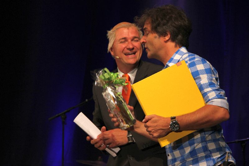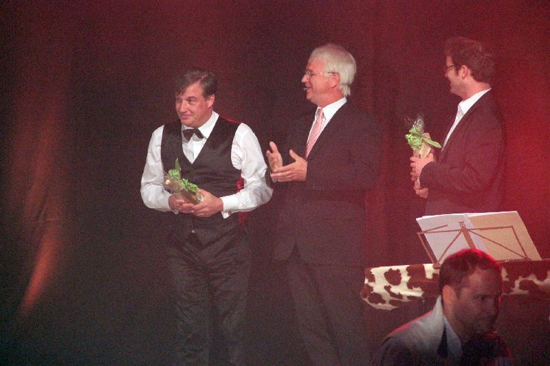 Abwechslung zwischendrin gab es immer wieder durch die Bayern3-Comedians Chris Böttcher und Wolfgang Krebs, der mal wieder alle 3 Ministerpräsidenten, aber auch unsere Bundeskanzlerin auf die Bühne brachte. "Entweder konsequent oder nicht konsequent, aber nicht immer dieses ewige hin und her." legte er der bayrischen Politik in Person des Horst Seehofer in den Mund. Dieses galt an diesem Abend mit höchster Sicherheit nicht für die Veranstalter, die in kürzestester Zeit einen perfekt organiserten Abend zusammenstellten.