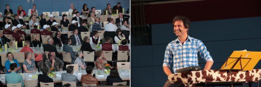Nach den vielen Ansprachen am Vormittag anlässlich der Neueröffnung war der Auftritt von Chris Böttcher ein schöner und amüsanter Ausklang einer gelungenen Feier. Bürger, Vereine, Behörden und Politiker kamen zu einem erfreulichen Ereignis zusammen und die über 600 Gäste zeugten davon, dass hier eine harmoniserende Gemeinde gemeinsam Spaß haben will und kann. Und man musste dafür keine "10 Meter geh'n", was natürlich auch nicht fehlen durfte.