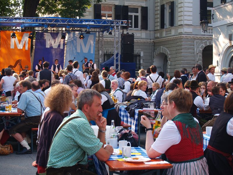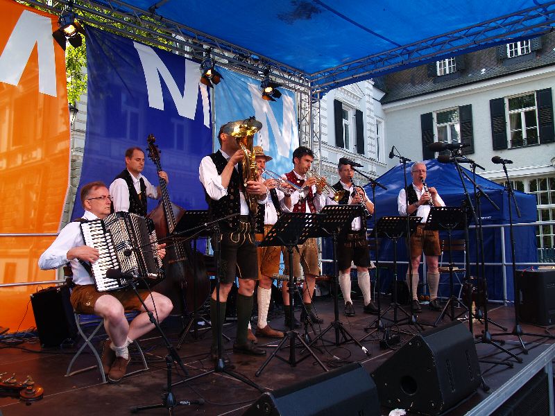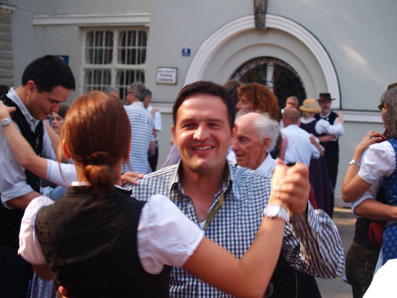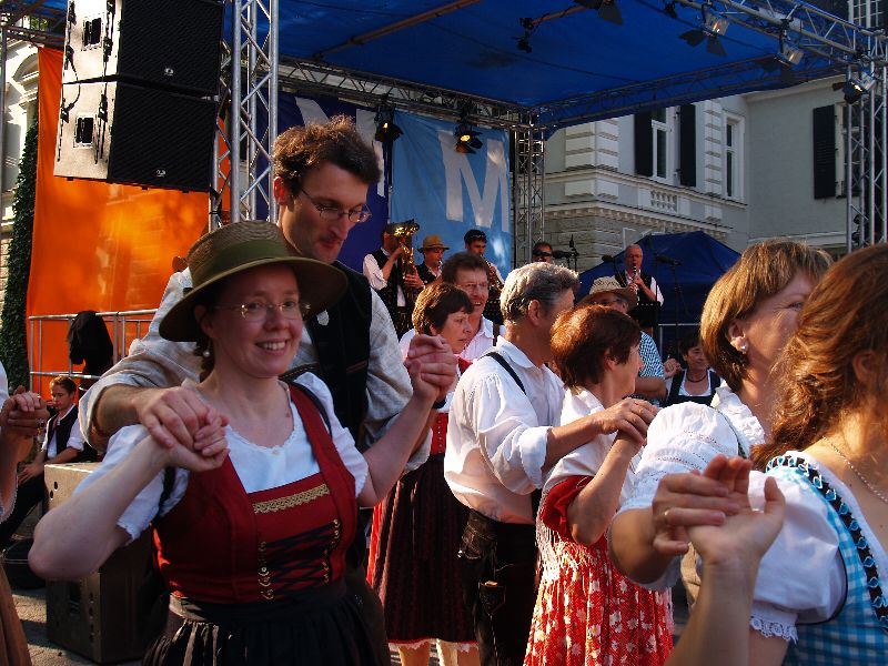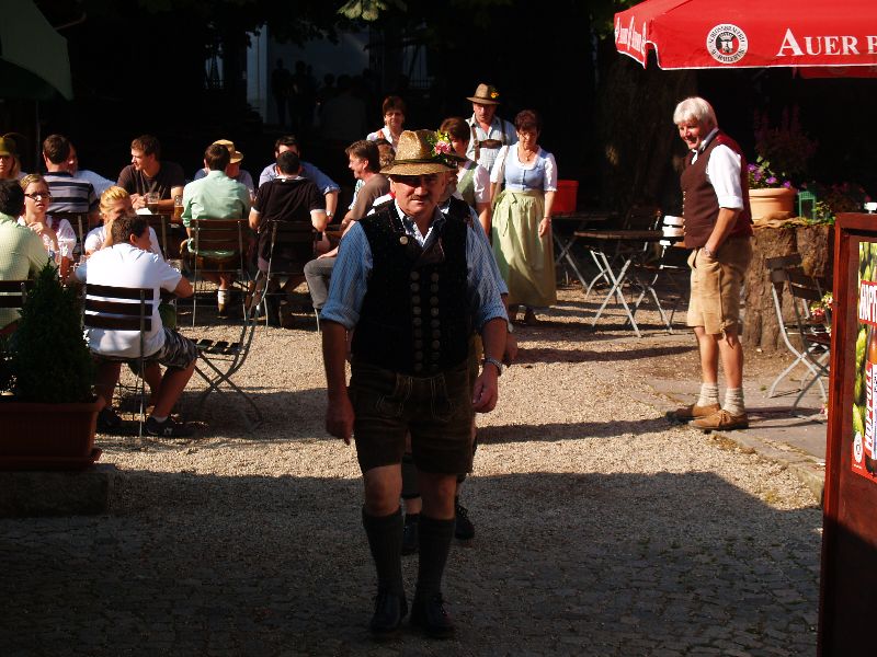 Zur Stärkung für Tänzer und Zuschauer gab es vom Biergarten-Chef Claus Soller ein Weißwurstfrühstück mit Frühschoppen und erstmalig für alle Schleckermäuler die eigens gebackenen Zwiefach-Nudeln.