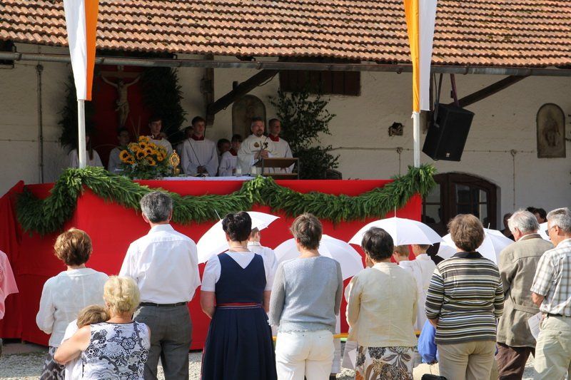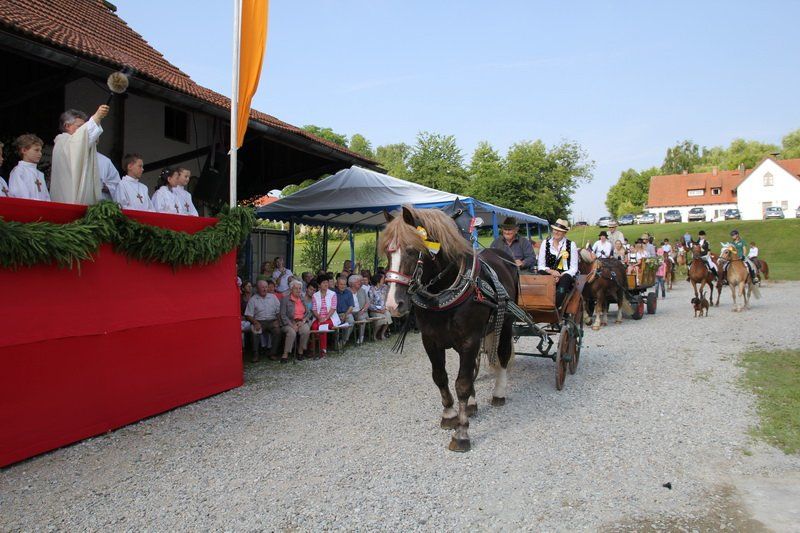 „Es freut mich in diesem Jahr ganz besonders, dass wieder so viele Gläubige den Weg zum Michlbauern gefunden haben“, so Pfarrer Thomas Schießl zu Beginn der hl. Messe. Nicht nur Reiter und Kutscher haben sich in diesem Jahr wieder auf den Weg nach Oberlauterbach gemacht, auch viele Pilger der Wedelinibruderschaft zog es zu Ehren ihres Heiligen dorthin.