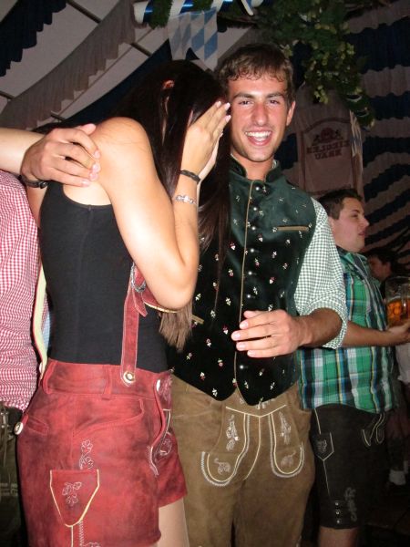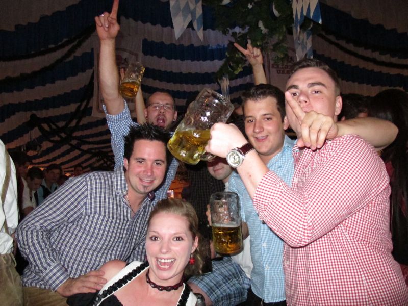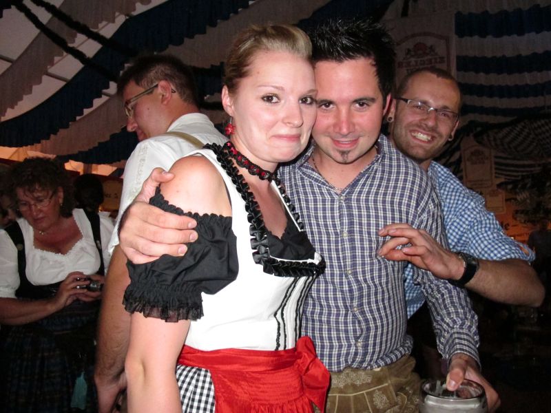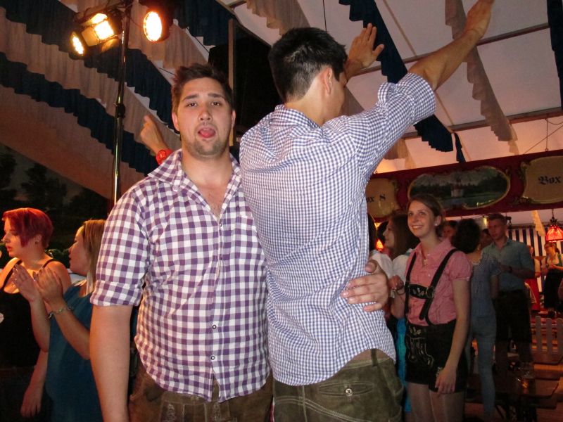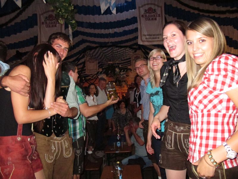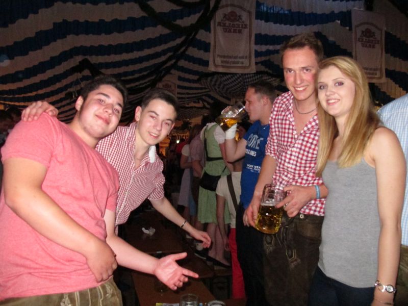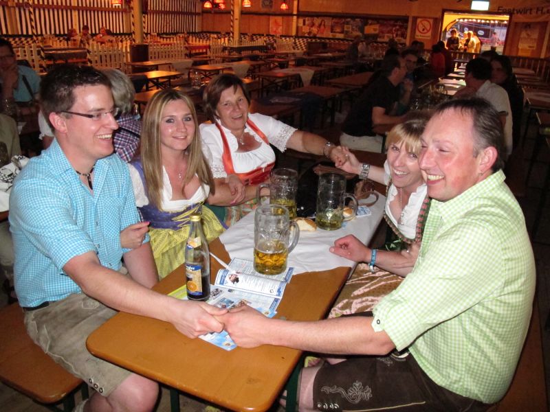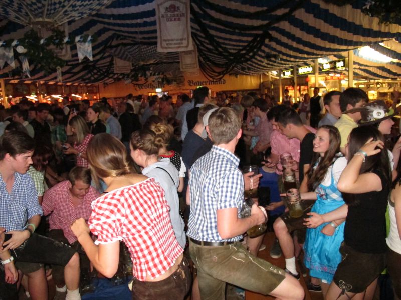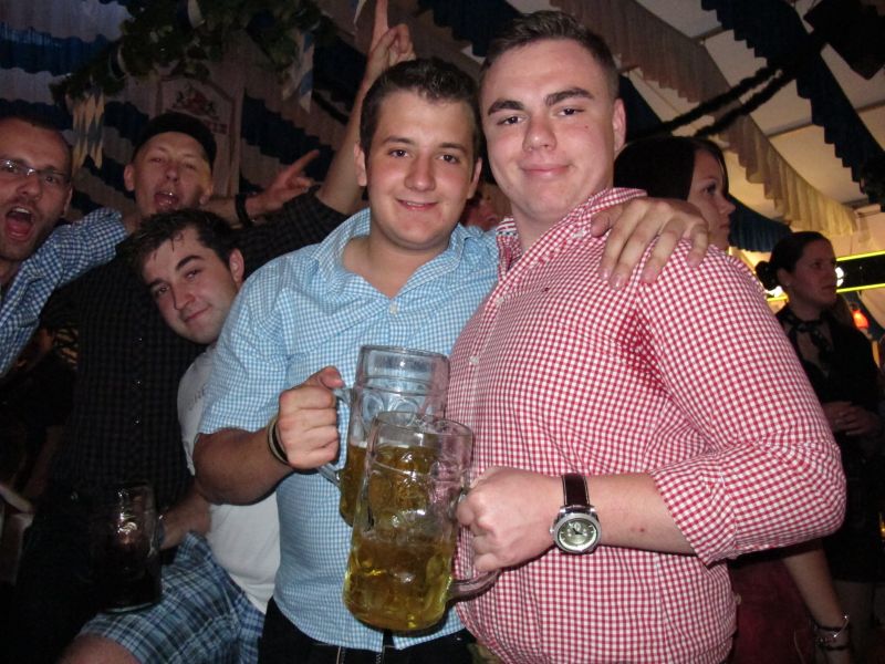 Schon von weitem hörte man die Partylieder und den vielstimmigen Gesang der Volksfestbesucher dazu. Kam man näher, sah man ein halbes Zelt gefüllt mit jungen Leuten auf Bierbänken stehend, die sich mehr hüpfend als tanzend zum Takt bewegten.
