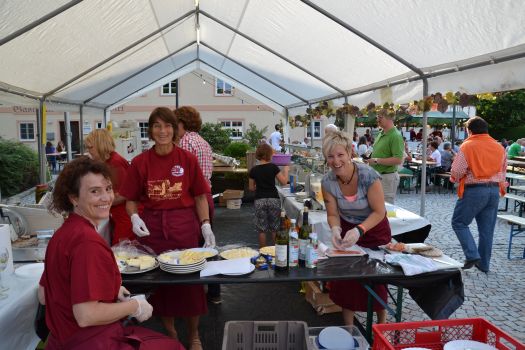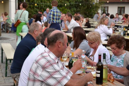 Da Essen und Trinken Leib und Seele zusammenhält, gab es kalte und warme Köstlichkeiten wie Vinschgauer mit Speck, Obatzter, Schinken- oder Käseplatten, Pfannengyros, Scampi-Spieße, oder Brat- und Curry-wurst. Die Weine (rot und weiß) stammten überwiegend aus Franken, Rheinhessen oder der Pfalz. Aber auch Rot- und Weißwein vom Gardasee waren vorrätig, so dass alle Weinkenner voll auf ihre Kosten kommen konnten. Die Feier ging bis spät in die Nacht, die Gäste waren alle gut drauf, sogar die beiden SPD-Kandidaten für Land- und Bundestag, Markus Käser und Florian Simbeck, hatten es sich nicht nehmen lassen, von Pfaffenhofen und Freising aus anzureisen.