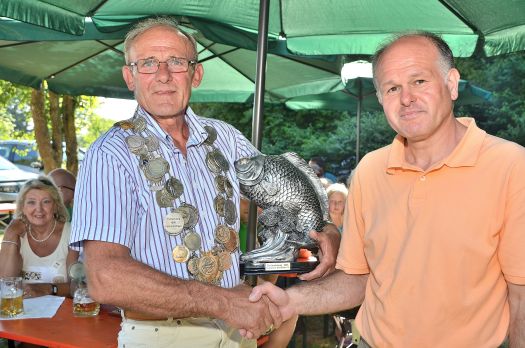 Trotzdem hat Manfred Schiedler Petri Heil gehabt und wurde damit zum diesjährigen Fischerkönig beim Königsfischen des Reichertshofener Fischereivereins. Dessen Vorstand, Herbert Heinzinger, legte ihm die Königskette um und zeichnete ihn mit einer Fisch-Trophäe aus. Helga Schütz belegte den zweiten Rang und durfte sich ebenfalls eine Angel als Preis aussuchen, bevor es am Abend ans Grillen ging.