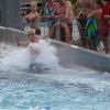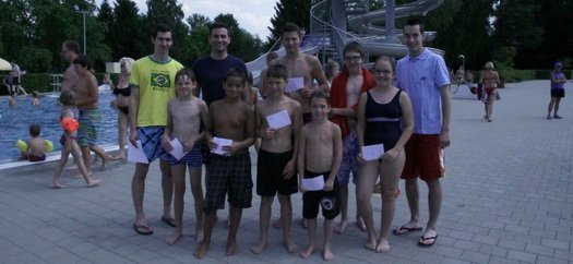 53 Kids gingen in diesem Jahr an den Start und wollten natürlich wissen, wer am schnellsten die Wasserrutsche hinuntergleiten kann. Einen Tipp gab‘s für alle mit auf den Weg. Füße über Kreuz und nur auf den Fersen und Schulterblättern nach unter gleiten. Mit 13,21 Sekunden löste Julian Catlik die Aufgabe nahezu perfekt und in seiner Altersklasse (10-14 Jahre) damit den ersten Platz. Platz zwei und drei gingen an Pascal Hermann (13,29 sek.) und Daniela Popp (13,40 sek.).