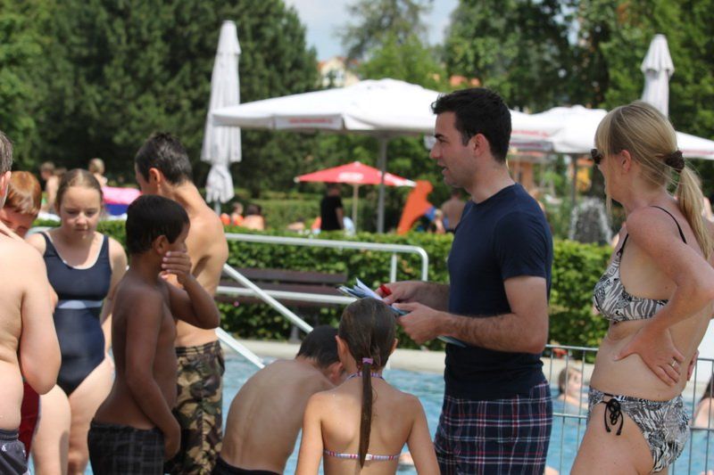 Kaum war der junge Wolnzacher Gemeinderat im Bad angekommen, wollten sich auch schon die ersten bei ihm anmelden. „Es ist immer schön hier in Wolnzach das Wettrutschen zu organisieren“, so Schmidpeter. In diesem Jahr bekam er besonders viele Anfragen im Vorfeld, wann diese Aktion denn wieder steigen wird.