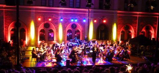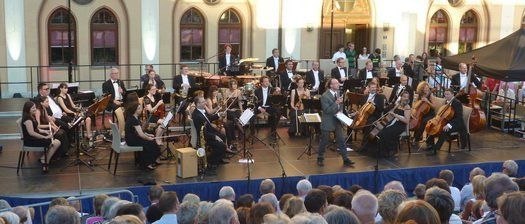 Die Reinkarnation eines Karl Valentin, in Persona von Stadtjurist Florian Erdle, dirigierte wort- und witzgewaltig Orchester, Stimmkünstler und Publikum durch drei Stunden Klassik Open Air der Hallertauer Art. „Es ist Verdi Jahr, deshalb beginnen wir mit Mozart“ die Auswahl der Musik Mischung und deren Moderation könnte als Glücksfall der heimischen Evolution in die Kulturgeschichte unserer Heimat eingehen. Das klassische Orchester ist ausschließlich mit heimischen und eingewanderten Künstlerpersönlichkeiten besetzt, die Gruppe „Dellhaue´n“ mit dem einzig noch lebenden Komponisten des Abends, Prof. Peter Wittrich, mit ihrem „Tradimix“, praktisch ein organischer Teil davon.