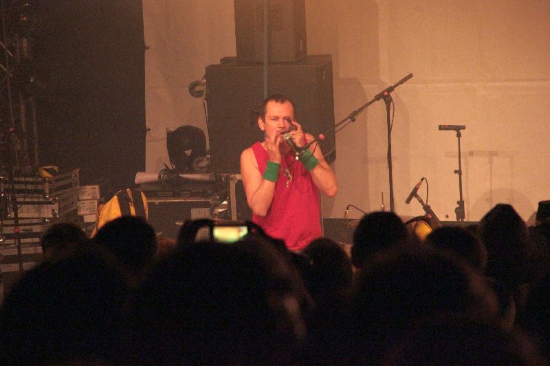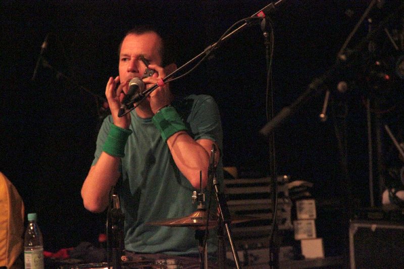Hauptact am Freitagabend waren Attwenger aus Linz; namentlich verbergen sich dahinter Markus Binder (Schlagzeug, Gesang, Maultrommel) und Hans Peter Falkner (steirische Harmonika, Gesang). Nahtlos reihen sie sich musikalisch ein in die Vertreter des Alpenrock eines Hubert von Goysern, der La Brass Banda oder der Cuba Boarischen, um nur einige zu nennen. Traditionelle folkloristische Instrumente und Grundmelodien, verbunden mit Texten im Dialekt, jedoch absolut rockig inszeniert, das kommt generations-übergreifend an. Besonders beeindruckend war Binders Maultrommel-Solo, das so zuvor sicher noch niemand aus dem Publikum gehört hatte. Unvorstellbar, was der alles aus diesem kleinen Instrument herausholt!