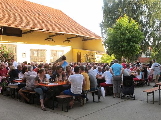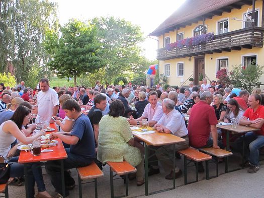 Die FFW Grünberg, die auch die Feuerwehren von Notzenhausen und Hemmersdorf beinhaltet, hatte alles bestens organisiert. Im idyllischen Innenhof des Ostermaierhofes waren Tische und Bänke aufgebaut, Kaffee und Kuchen, später Grillfleisch, Steckerlfisch, Würstl und Salate waren in Eigenregie hergerichtet worden. Für die Kinder gab es eine Hüpfburg und Kinderschminken. Der Erlös dieses schönen Festes geht an die FFW Grünberg.