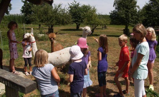 Spiel, Spaß und Spannung mit Hasen, Ziegen und Alpakas versprach heute ein Besuch im Bauernhofcafe Dobl in Reichertshausen. Zuallererst war einmal war das Kennenlernen zwischen den Kids und den Alpakas angesagt. Mit kleinen Karottenstückchen durften die Kinder die Tiere füttern und ihr Zutrauen gewinnen.