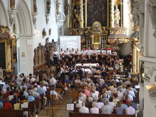 Eine brechend volle Kirche, eine Videoleinwand, auf der erstmalig auch der Organist Max Hanft bei seinem Spiel auf der Orgel live zu sehen war und ein eng gedrängtes Orchester im Altarraum samt zugehörigem Chor. Meisterorganist Max Hanft spielte zu Beginn die viersätzige Sonate f-moll op. 65/1.von F. Mendelssohn Bartholdy, die, dank der zusätzlichen visuellen Unterstützung, ein vollkommen neues Erlebnis in der Stadtpfarrkirche darstellte.