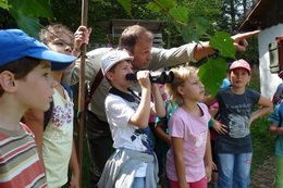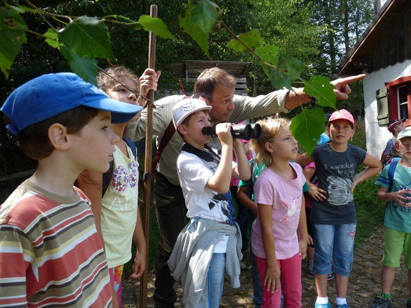 „Jäger ist eigentlich kein Beruf, sondern eine Aufgabe“, so Alois Widmann, der als passionierter Jäger die Kids durch den Wald führte und von vornherein klar stellte, dass das Schießen nur ein sehr kleiner Teil seines Aufgabengebietes ist. „Viel wichtiger hingegen ist es, sich um die Tiere zu kümmern, im Winter zu füttern und den Bestand weder zu groß, noch zu klein werden zu lassen“, betonte Alois Widmann. Auch das wichtigste Instrument des Jägers lernten die Kinder gestern hautnah kennen - entgegen der weitläufigen Meinung ist dies aber nicht das Gewehr, sondern vielmehr das Fernglas, das das Beobachten der Tiere ermöglicht. So hatten die Kids besonders viel Glück, da sich in der Ferne gleich zu Beginn eine Hirschkuh zeigte, die auch lange genug stehen blieb, sodass jeder einen Blick durch den Feldstecher werfen konnte.
