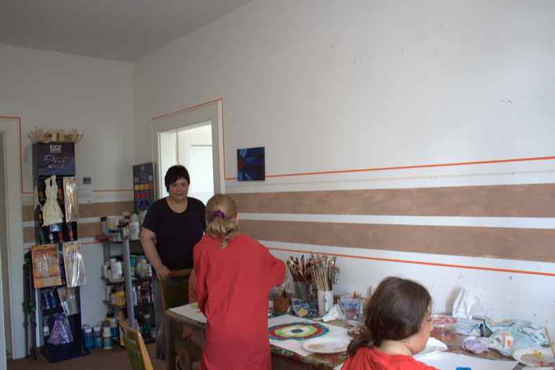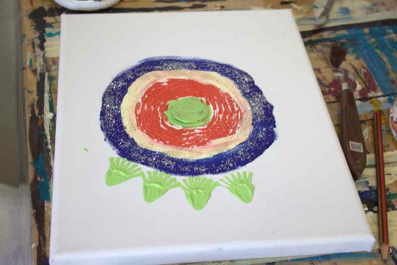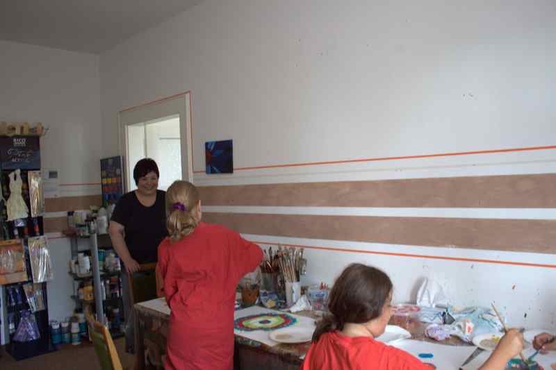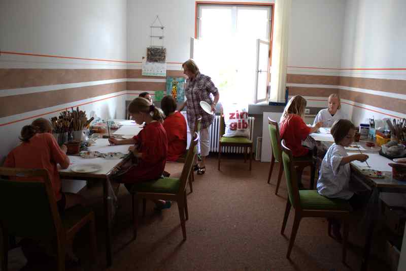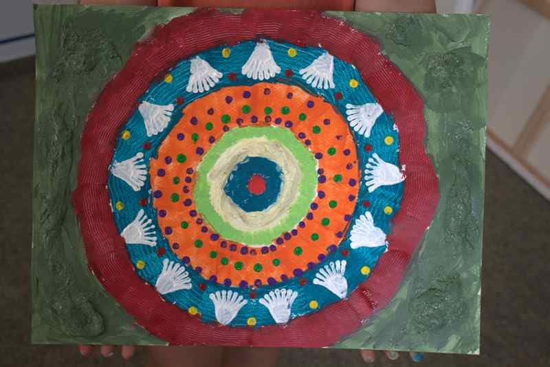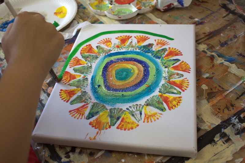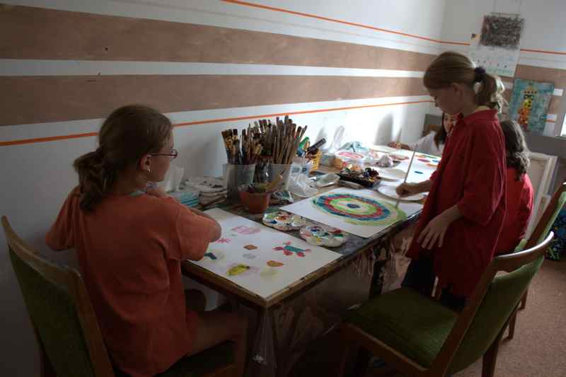 Zunächst einmel konnten die jungen Künstler sich mit den Techniken des Spachtelns, Tupfens, des Malens mit Schwamm, Füchern, Fingern, mit Sand und Seidenpapier bekannt machen - bevor sie Formen, Farben und Bewegung aufs Papier brachten. So entstanden zum Beispiel beeindruckende Mandalas. Der Workshop war eine einmalige Ferienpassaktion, allerdings findet Petra Dockendorfs "Bunt-Zeit" während der Schulzeit regelmäßig freitagnachmittags statt, hierfür können Kinder über anmeldung@bunt-zeit.de angemeldet werden. Übrigens gibt es auch für kreative Erwachsene ein Angebot: Im "Offene Atelier" im "Jubi" wird dienstagabends an eigenen künstlerischen Projekten gearbeitet. Nähere Informationen gibt es auf der Homepage von Kursleiterin Petra Dockendorf: www.bunt-zeit.de