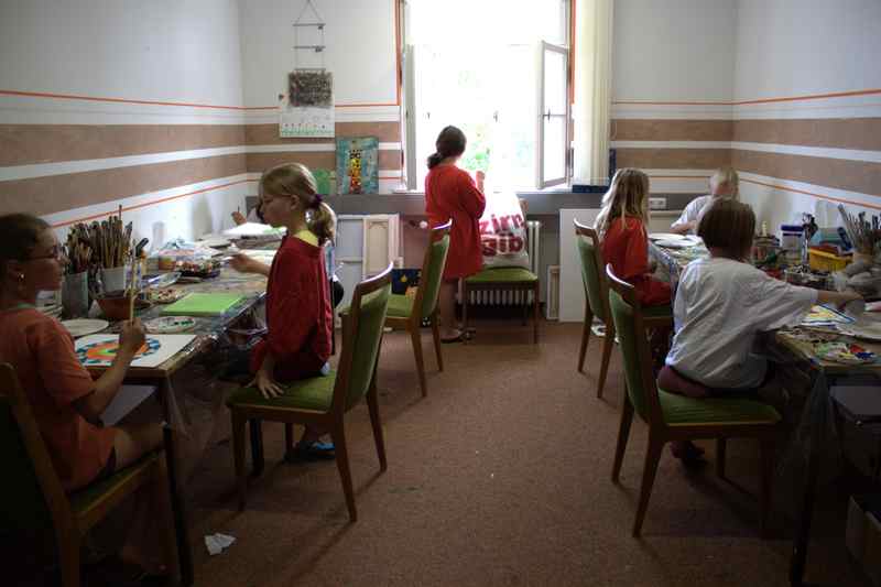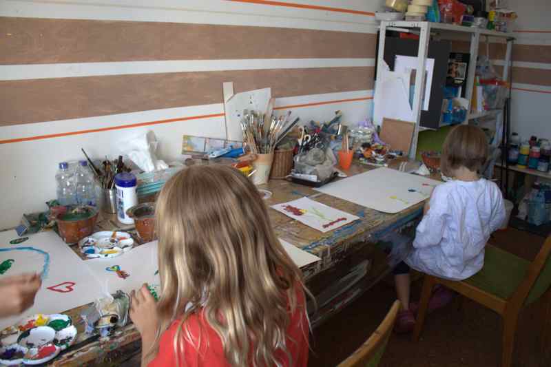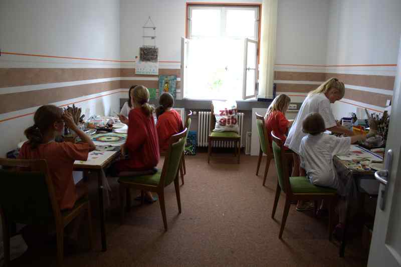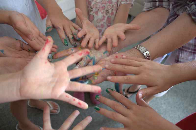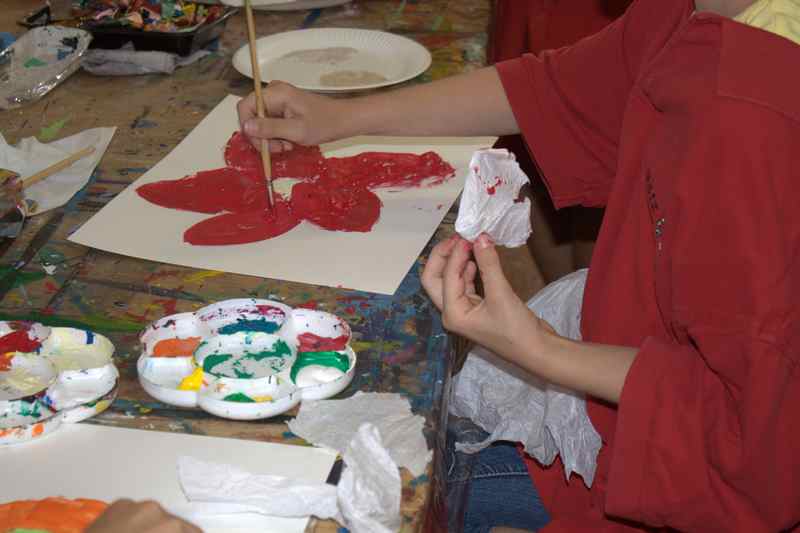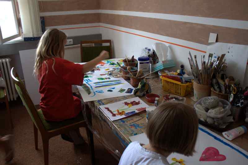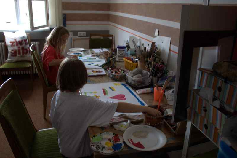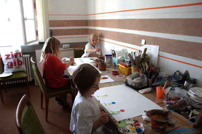 Bunte Finger und leuchtenden Augen bekamen die Sieben- bis Zehnjährigen, die am Mittwochnachmittag beim experimentellen Malen im "Jubi" ihrer Kreativität freien Raum ließen.