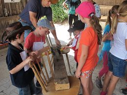 Dazu gehörten: erste Putzversuche an geduldigen Haflingern, Ponyreiten in der Halle, Kutschfahrt mit 2 Haflingern, Voltigierversuche auf einem hölzernen Pferd, Schmiedehammern mit Nägeln auf einem Holzstock und zuletzt ein Steckenpferdrennen über einen Springparcour am Reitplatz.