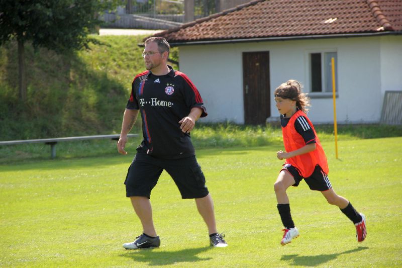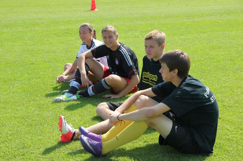 Spaß hatten dabei alle. Die Kids kämpften den Erwachsenen ein ums andere Mal den Ball ab. Tore durften gemäß der Regeln sowieso nur die Kleinen schießen, so dass die Großen gezwungen waren, taktisch zu spielen. Konditionell waren die Kinder und Jugendlichen, die mitten aus der Campwoche kommen, den meisten Eltern ohnehin überlegen. Den Älteren stand der Schweiß nach den Spielen auf der Stirn, die Jüngeren schnappten sich sofort einen Ball und weiter ging's.