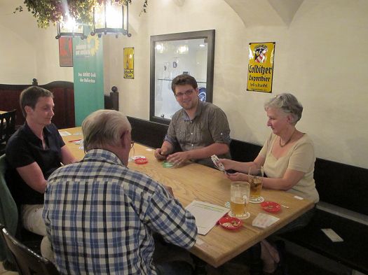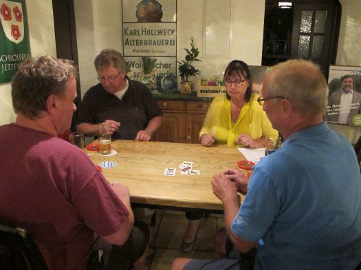 An drei Vierertischen versuchten die Grünen ihr Glück im Kartenspiel, was sichtlich eine Erholung vom Wahlkampfstress bot. In den kommenden Jahren dürfen sich auch gerne Nichtpolitiker an dem Turnier beteiligen.