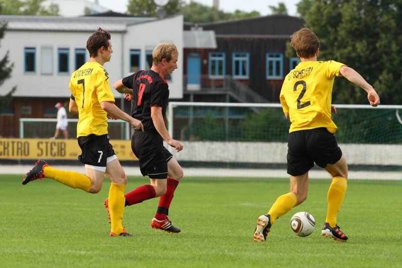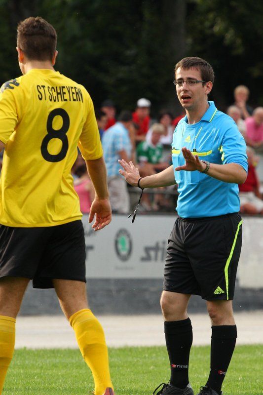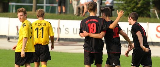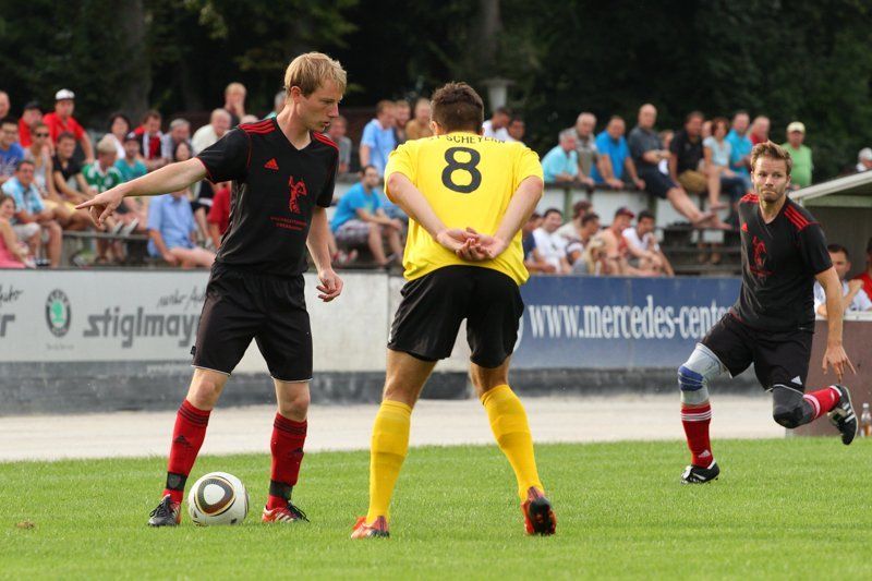 Weitere Bälle nach vorne zu Thomas Edelmann blieben im Mittelfeld des ST Scheyern stecken. Eine kleine Erlösung folgte fünf Minuten vor Halbzeitpause. Nun erhielt der FSV einen Elfmeter – Zweifel bestanden, ob dieser rechtmäßig gewesen sei, ST-Spieler und Fans plädierten nämlich wie der Trainer selbst auf Ballspiel. Nichtsdestotrotz musste der ST Scheyern einen Gegentreffer zum 1:1! Durch Josef Blumenfelder hinnehmen.