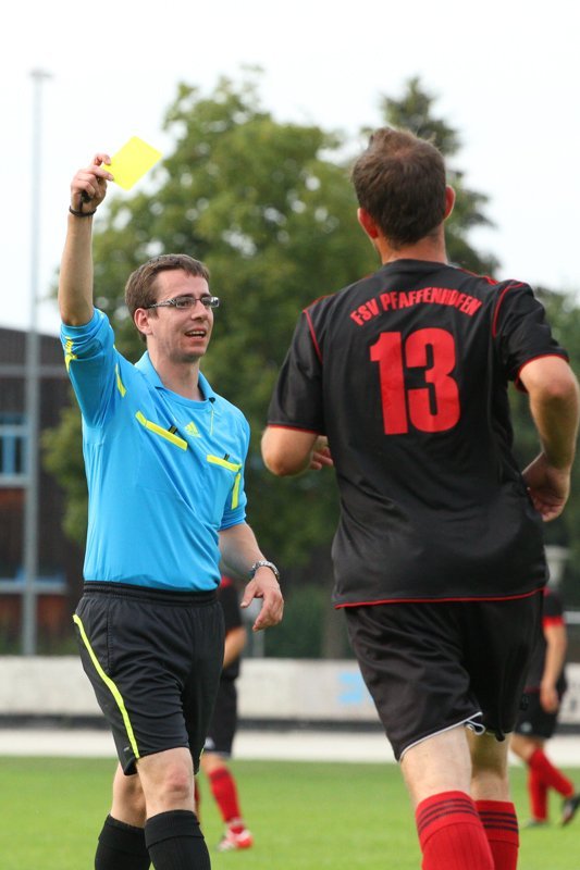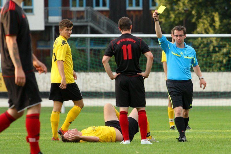 Scheyern war stark – sehr stark! Bereits in der 2. Minute versuchten es die Kicker in Gelb, das Runde ins Eckige zu befördern. Nico Seepe konnte zur 8. Spielminute seinen Freistoß leider nicht verwerten, FSV-Keeper Bork musste gar nicht erst eingreifen. Nach einem unglücklichen Foulspiel der Pfaffenhofener im eigenen Strafraum konnte Seepe schlussendlich Scheyern zur 0:1-Führung befördern. Drei Minuten später ein erneuter Angriff, bei dem Mathias Hoiß den Ball vor das Tor zu Raphael Boser schob, welcher jedoch am Tor vorbeizielte. Pfaffenhofen frustete die 0:1-Führung sehr, so zogen die Ballverluste seitens der Gastgeber zahlreiche Fouls mit sich.