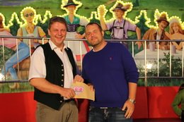Auch für die Wolnzacher Jugend hielt der Volksfestabschluss noch eine Überraschung parat. 500 Euro spendete Robert Scheidacher, Besitzer vom Superhupferl, für die örtliche Jugendarbeit. „Wir leben von der Jugend, das Geschäft lebt mit der Jugend, und wir möchten der Jugend etwas zurückgeben,“ so der Fahrgeschäftsinhaber Scheidacher, der regelmäßig auf der Wolnzacher Wies’n sein Hupferl aufbaut. Wie der Bürgermeister bereits ankündigte wird ein Teil der Spende weiter an das JuBi fließen.