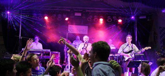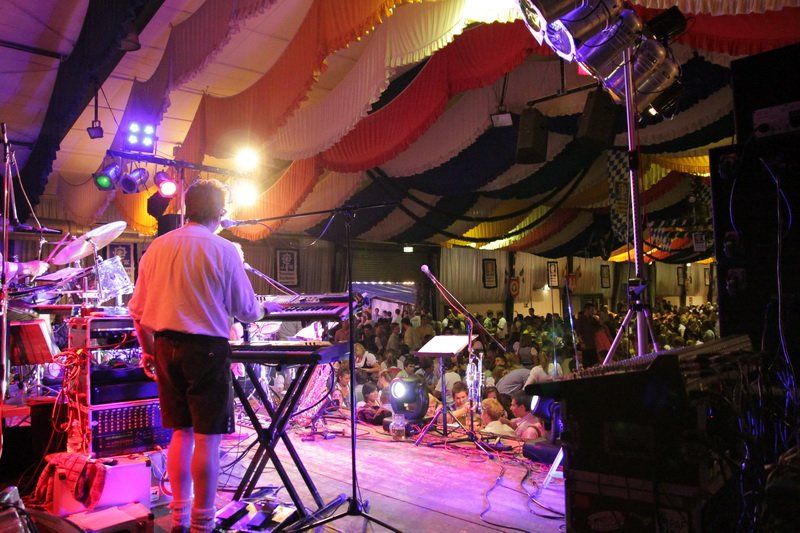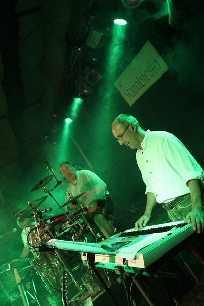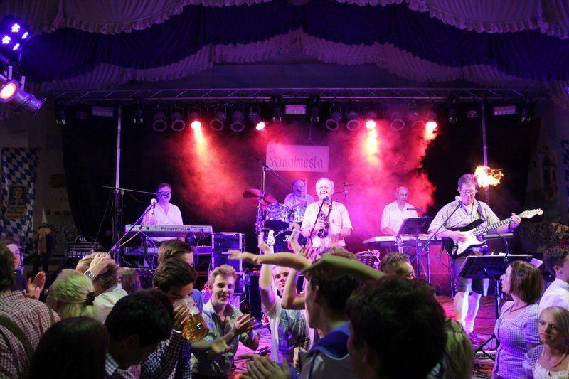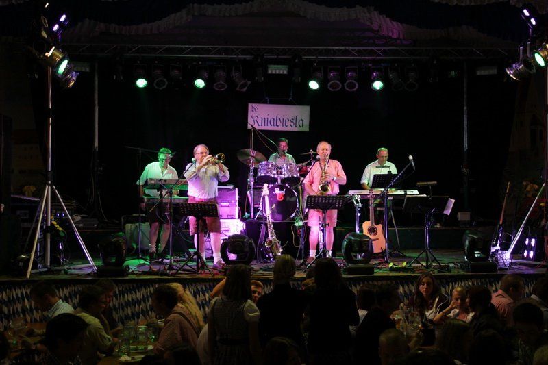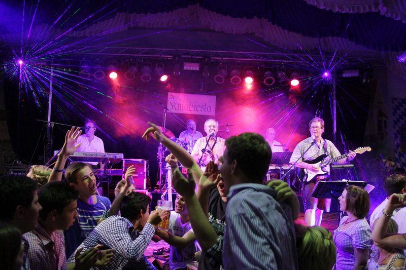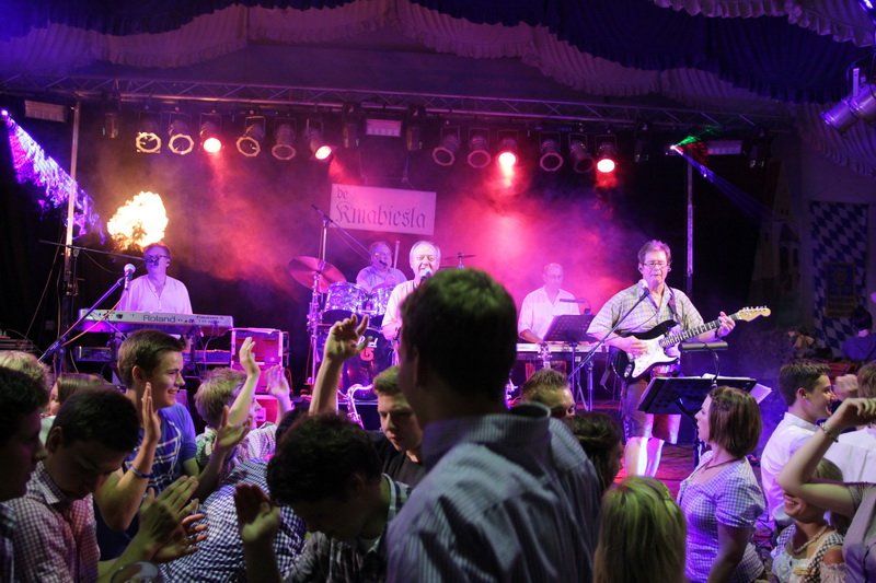 Während einige im Außenbereich noch eine letzte Runde mit dem Autoscooter drehten oder nochmal das Superhupferl fuhren, verabschiedeten sich die Kniabiesla mit den Hits „Knockin‘ on Heaven’s door“ und „Hey Jude“ von ihren Gästen, die die Halle noch einmal kräftig zum Wackeln brachten.