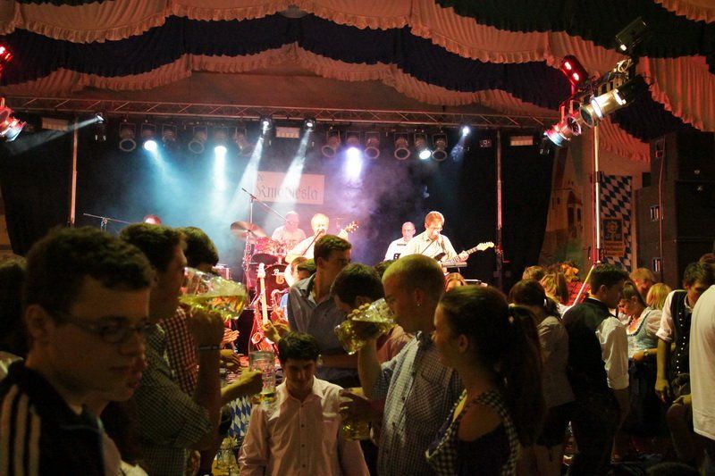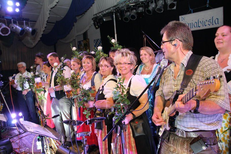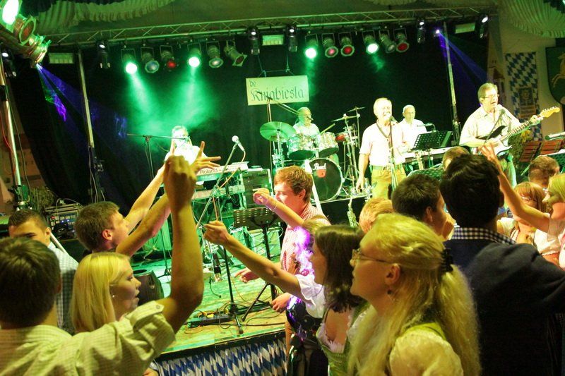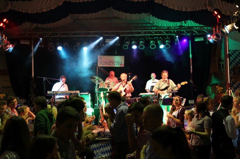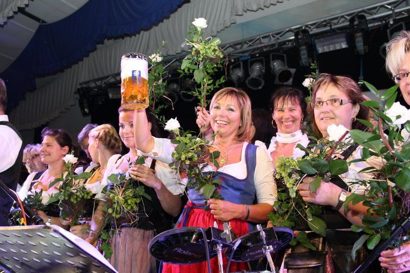 Trotz wankelmütigem Wettergott, der der Hopfenmetropole zunächst noch Regen bescherte, ließen es sich die Wolnzacher nicht nehmen, noch ein letztes Mal zusammen mit den Kniabieslan die Sau raus zu lassen. So waren die Voraussetzungen fürs Feiern wieder bestens – früh schon füllte sich die Volksfesthalle und nicht nur die Küche, sondern auch der Schankkellner und die Bedienungen hatten alle Hände voll zu tun, die Besucher mit Bier und bayrischen Köstlichkeiten zu versorgen.