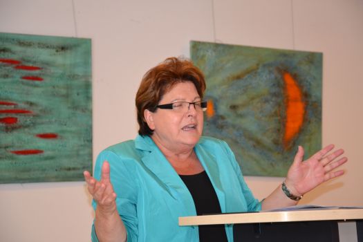 Das Hauptreferat hielt dann die Landtagspräsidentin. Sie stieg ein mit einer früheren Schülerfrage, ob es denn in der Politik Freunde gäbe. „Ja, die gibt es“, so Stamm. Dann ging sie auf die Kultur der politischen Auseinandersetzung ein und verurteilte Verunglimpfungen und Verdächtigungen. Sie forderte auch eine sachliche Auseinandersetzung zu politischen Themen. So solle man sich über die Forderungen zur Vermögens- und Erbschaftssteuer auseinandersetzen. Beides schade zum Beispiel dem Mittelstand, den sie als besonders wichtig für Bayern ansah. Dabei gehöre die Erbschaftssteuer in die Verantwortung der Länder.