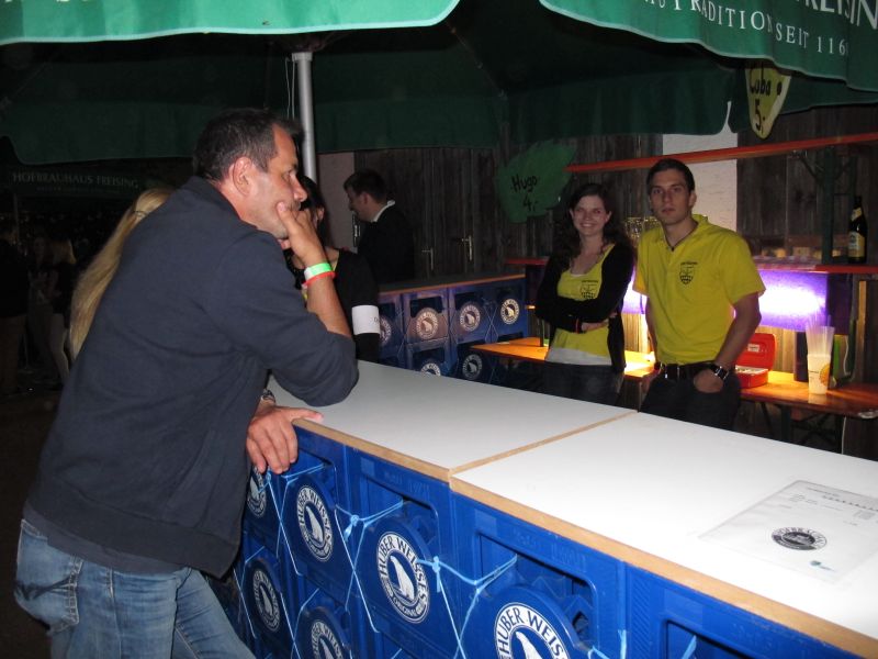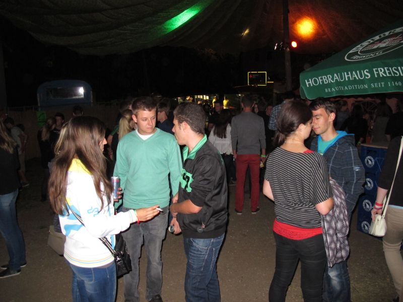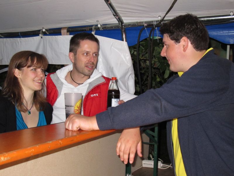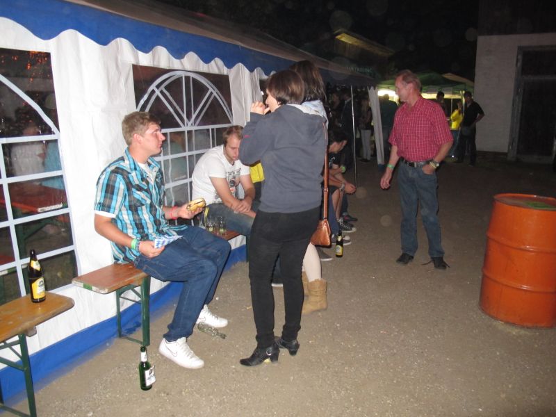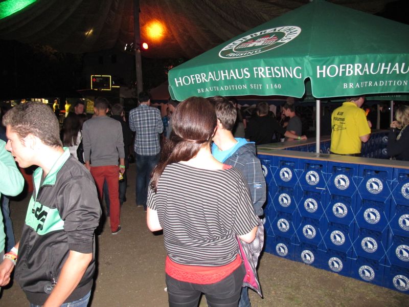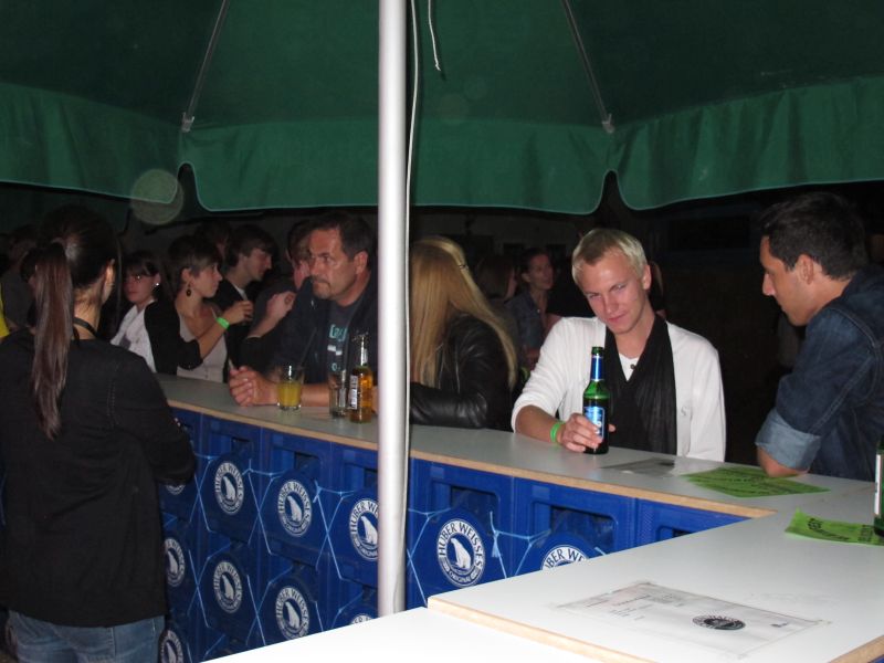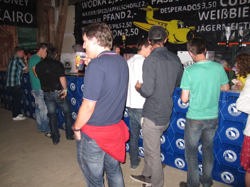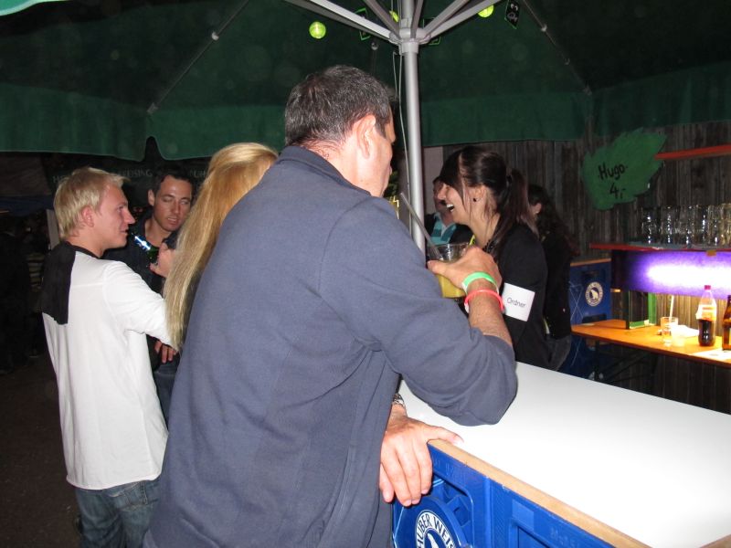 Besonders die mit Bierkisten aufgebaute Bar im Außenbereich hatte es den Besuchern angetan, dort tummelten sich an Stehtischen die Jugendlichen. Die älteren Semester machten es sich, etwas abseits vom Geschehen, auf Bierbänken gemütlich.