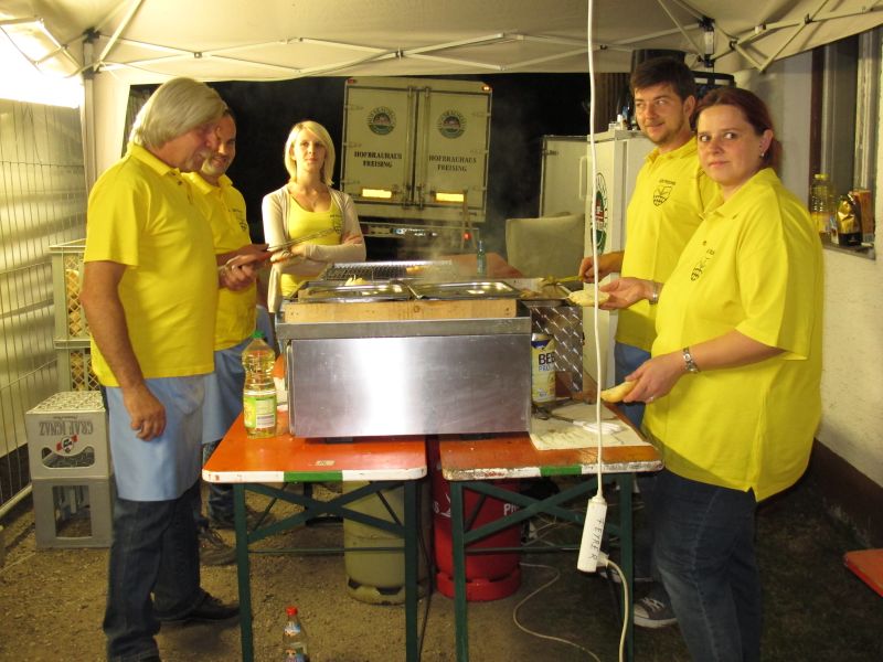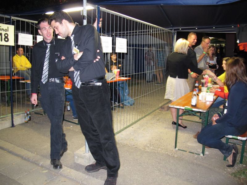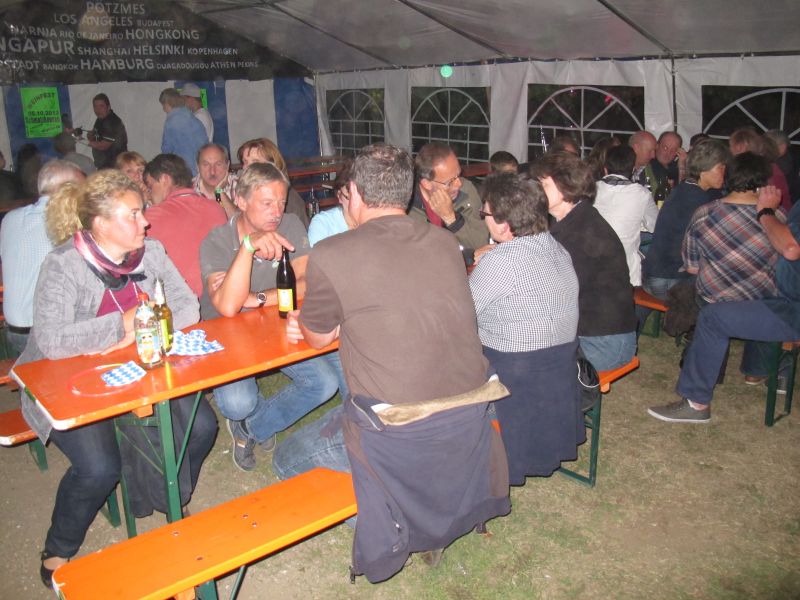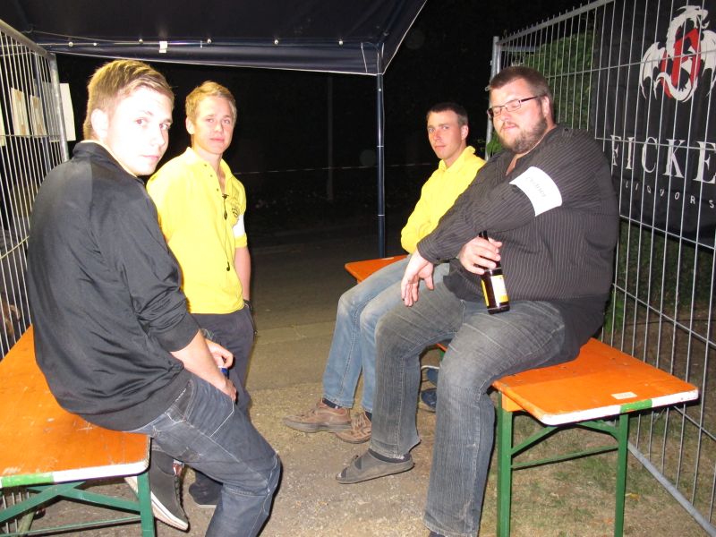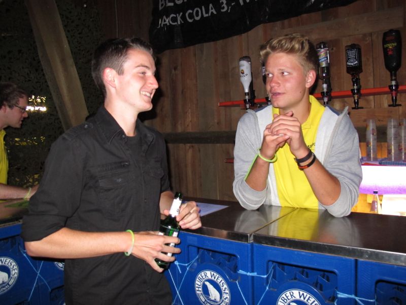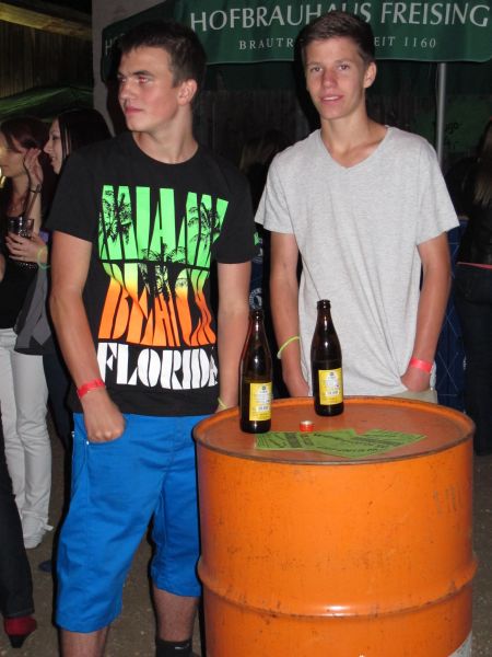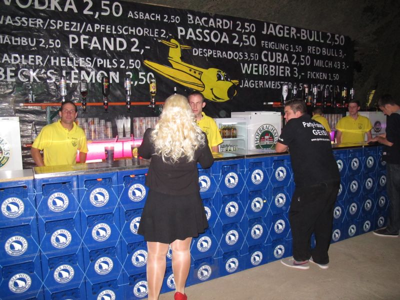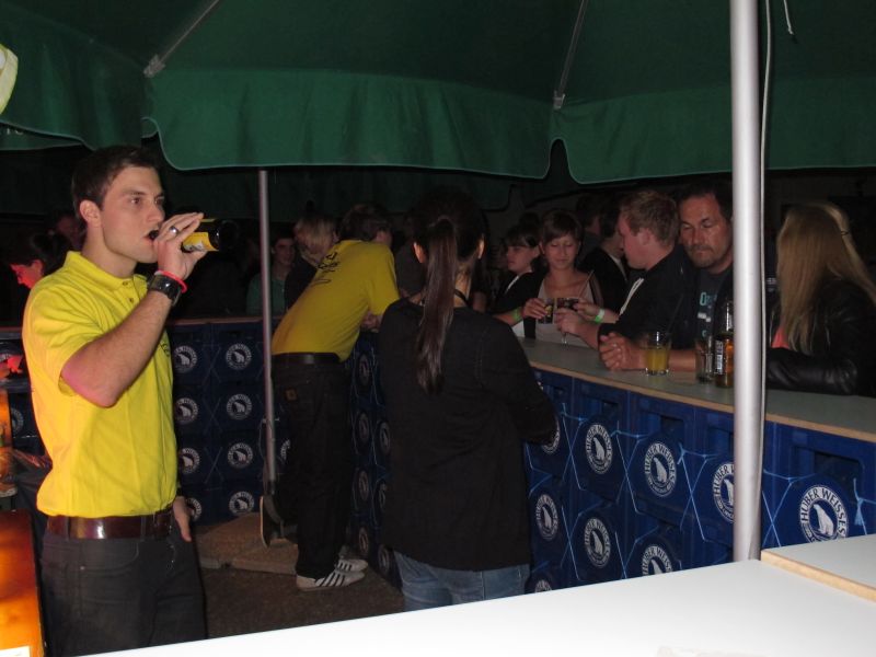 Besonders die mit Bierkisten aufgebaute Bar im Außenbereich hatte es den Besuchern angetan, dort tummelten sich an Stehtischen die Jugendlichen. Die älteren Semester machten es sich, etwas abseits vom Geschehen, auf Bierbänken gemütlich.
