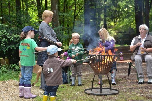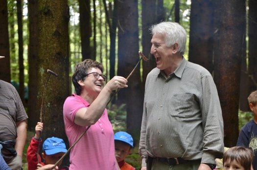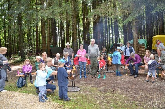 Der Höhepunkt des Waldabenteuers war schließlich an der Jagdhütte des Försters, wo Engelhard Bratwürste und Brot an zwei Lagerfeuerstellen spendierte.