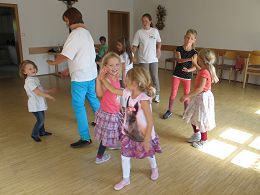 8 Kinder nahmen das Angebot der Ferienspiele war und übten fleißig die Tanzschritte ein. Als Belohnung durften sie dann ihren Eltern am Ende des Nachmittags eine kleine Vorführung darbieten.