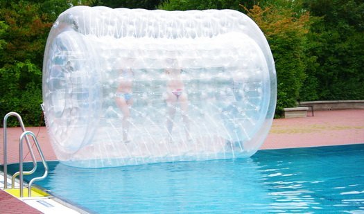 Das Jugendparlament veranstaltete am vergangenen Dienstag einen spaßigen Wettbewerb im Städtischen Freibad Pfaffenhofen. In einer aufblasbaren Wasserrolle mussten die Teilnehmer wie in einem Hamsterrad über das Wasser „laufen“, sich also im Hohlraum so schnell bewegen, dass die Rolle sich durch Rotation im Wasser fortbewegt. Die zehn Teilnehmer in fünf Teams hatten nicht nur selbst viel Spaß, sondern boten auch den Zuschauern ein amüsantes Bild.