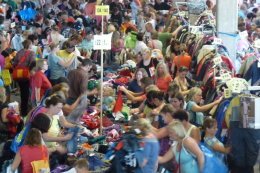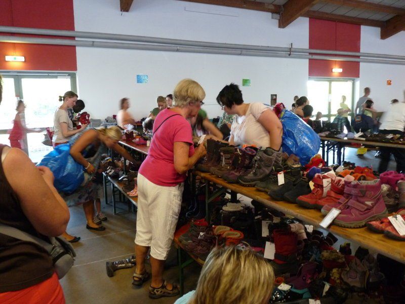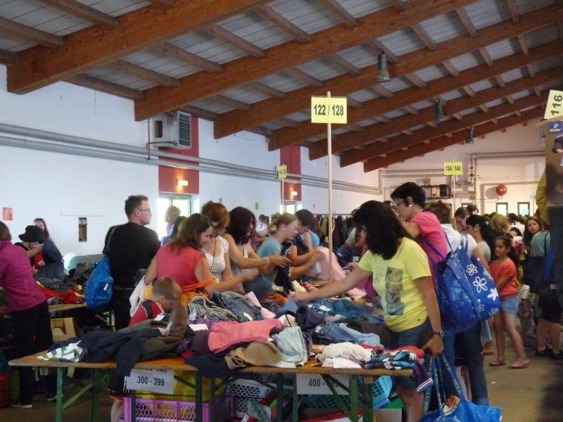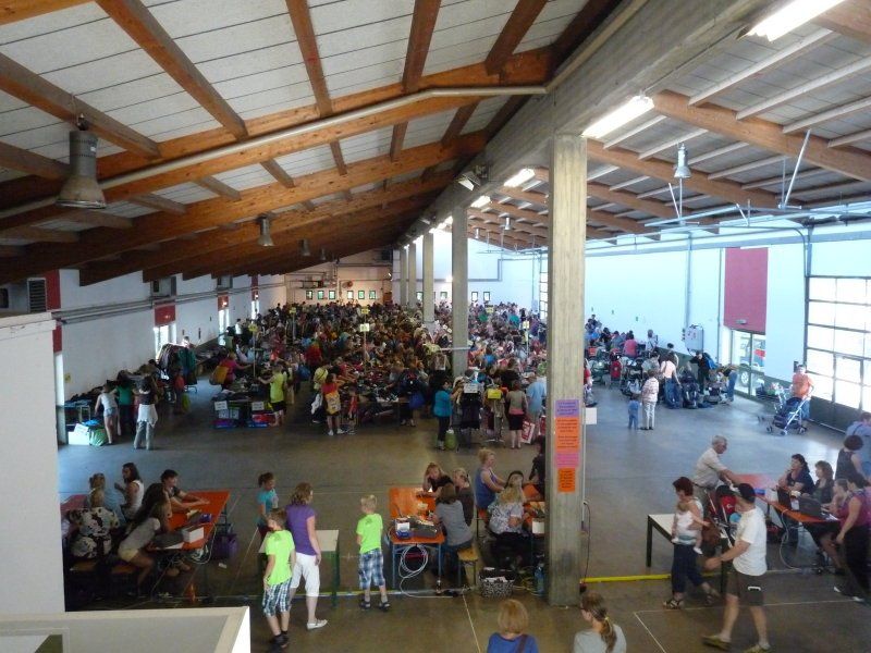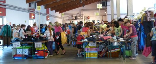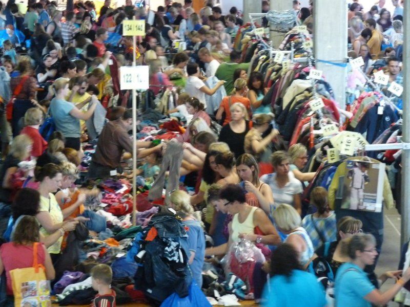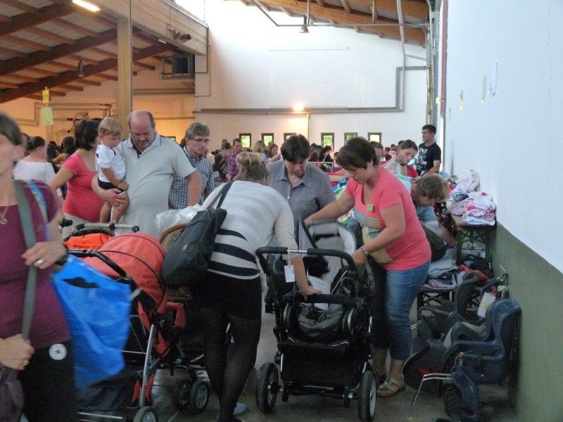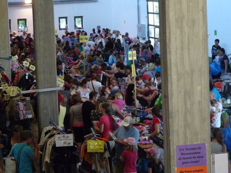 Bereits um 15:45 Uhr – mehr als eine Stunde vor der offiziellen Eröffnung – warten bereits die ersten Eltern vor den Türen. Aus dem ganzen Landkreis sind sie angereist, um hier Kleidungsstücke, Geschenke, oder Ausstattungsgegenstände für das Kinderzimmer zu finden. Und sobald sich dann die Tore öffnen, gibt es kein Halten mehr. Binnen einer Minute füllt sich die Halle und schon eine Viertelstunde später sieht man geleerte Tische und Ständer, aber auch zufriedene Gesichter.