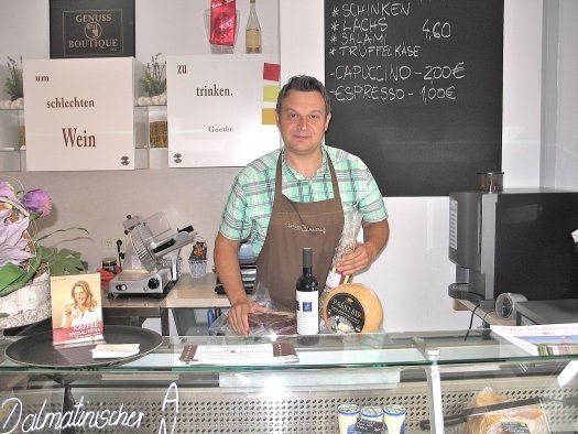 Nichts kommt über die Ladentheke ohne dass es vorher vom Chef höchstpersönlich in Augenschein genommen wurde. Das beginnt bereits beim jährlichen Einkauf in Italien, Spanien, Frankreich und natürlich Kroatien. Persönlicher Kontakt zu den Herstellern - Winzer, Käsereien, Metzgereien - bürgt hier für gleichbleibend erstklassige Qualitätsware, die es trotz des Aufwands zu einem fairen Preis-Leistungs-Verhältnis gibt. So hat der Kunde den unschätzbaren Vorteil, etwa Weine aus kleinen Gütern zu bekommen. Von dort also, wo schon die Familientradition es verlangt, dass nur bester Rebensaft den Hof verlassen darf. Gleiches gilt übrigens ebenfalls für die diversen Öle, wie etwa das überragend milde Kürbiskernöl aus Kroatien, das bereits viele Liebhaber gefunden hat.