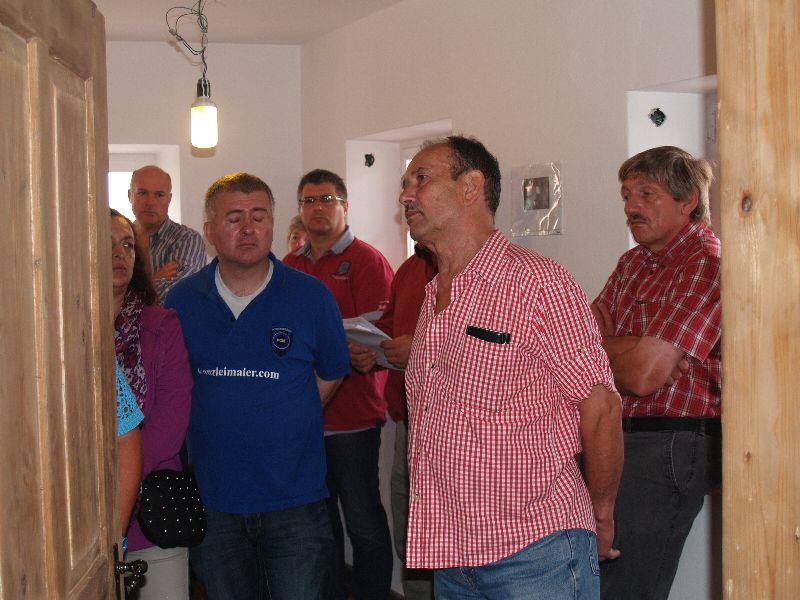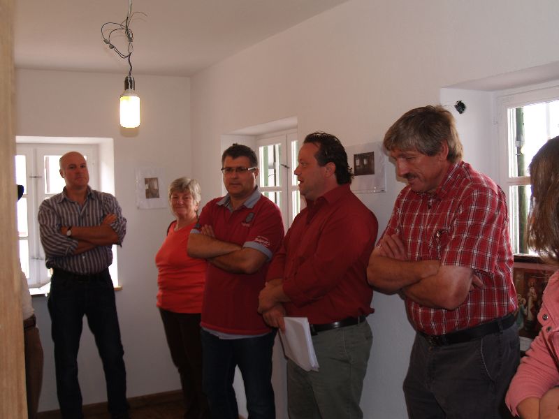 Überall in den einzelnen Zimmern hingen auch kurze Berichte über die Bausubstanz des Raumes und daneben Fotos von den aufwändigen Renovierungsarbeiten. So konnten sich die vielen Besucher ausführlich informieren und waren sichtlich angetan von dem „alten Gemäuer“, wie es einige nannten. Nach eingehender Besichtigung war selbstverständlich im Hof des Anwesens für Getränke und Brotzeit gesorgt.