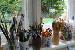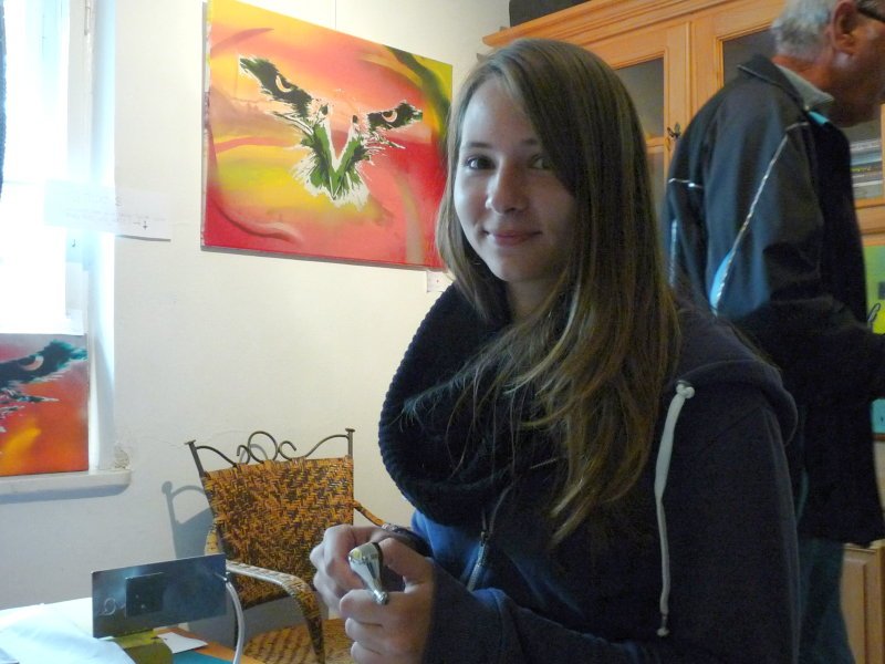 Und auch der Nachwuchs steht schon bereit. Neben den Werken von Martina Ulrich, stellt auch ihre Tochter, Franziska Ulrich, verschiedene Arbeiten zum Tag der offenen Tür aus. Zudem sind Glasarbeiten und Schmuck von Michael und Elisabeth Molik, Eisen- und Gartenobjekte von Petra Hartl, Garten- und Holzarbeiten von Karin Jansen sowie Kreatives aus Stoff von Petra Müller zu sehen. Wem dies noch nicht genug ist, der hat auch die Möglichkeit, sich von Franziska Ulrich ein Airbrush-Tattoo aufsprühen zu lassen – eine gute und verblüffend echt wirkende Alternative zu den sonst lebenslang begleitenden Originalen.